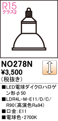 オーデリック NO278N スポットライト用交換LEDランプ 電球色 330lm Φ50ダイクロハロゲン球 口金(E11) ODELIC