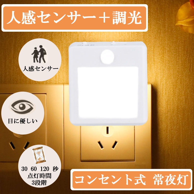 常夜灯 コンセント式 LED 寝室 センサー おしゃれ ライト 人感 コンセント 調光 ナイトライト フットライト 足元灯 送料無料