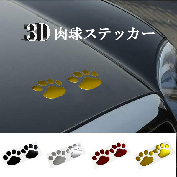 肉球 2個 足跡 テープ シール 3D PVC ステッカー ドレスアップ 塗装 キズ 隠し 猫 犬 車 かわいい ポイント消化 送料無料
