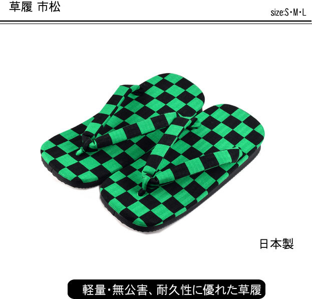 草履 雪駄 市松 鬼滅の刃 市松 緑 炭治郎 たんじろう メンズ きめつ メンズ 男性 ギフト プレゼント 敬老の日 父の日