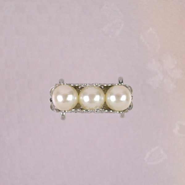 パールを3粒あしらった控えめですがパールの輝きが華やかな帯留めです。帯留め紐とほぼ同じ幅の帯飾りですので、スッキリとした上品な仕上がりに!帯留めをプラスするだけで、いつもと違ったコーディネートを楽しんでいただけます。