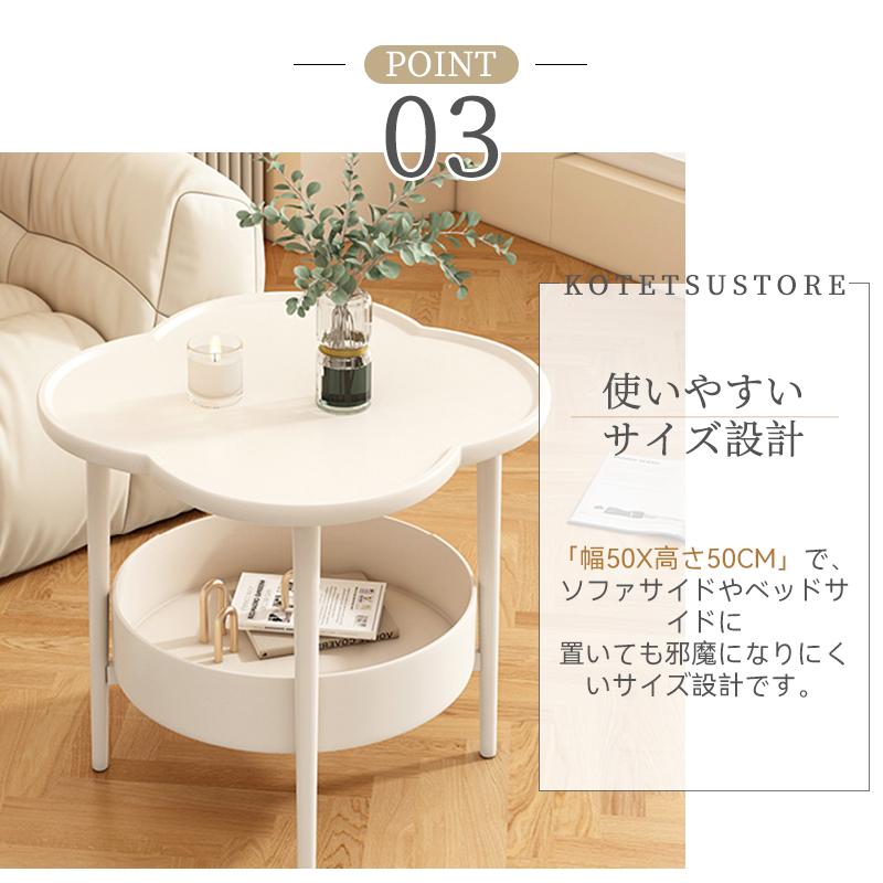 テーブル ミニサイドテーブル 2段 多機能 直径50cm 花型 四葉 サイドテーブル コーヒーテーブル おしゃれ ベッドサイドテーブル ソファサイドテーブル