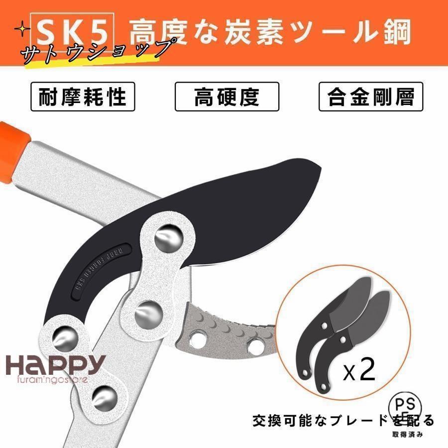 園芸用ばさみ 太枝切鋏 切断径65mm 強力型 剪定ばさみ テコ式伸縮長さ69-103cm 高枝切りバサミ 趣味の園芸用品 樹木の剪定が簡単にできる園芸鋏・替刃付き鋏