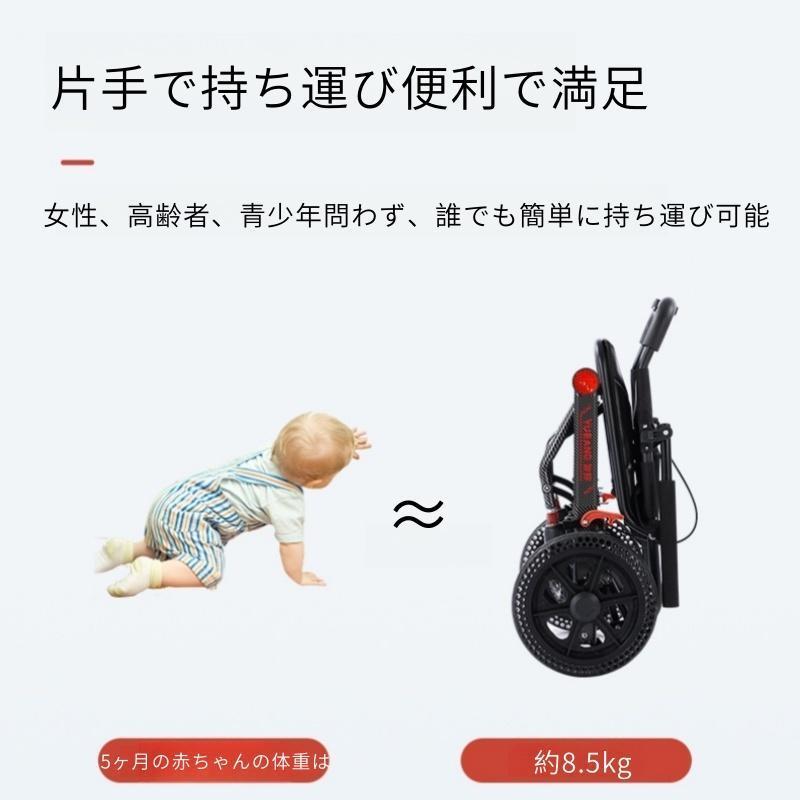 簡単に押して進められ、力が必要なく、飛行機に持ち込み可能な車いすです。