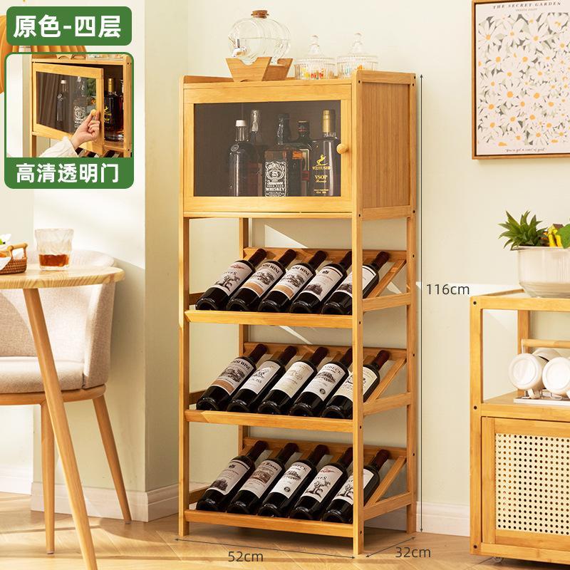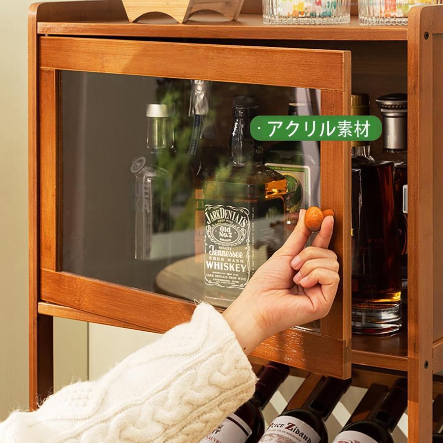 竹製酒 棚 収納コンパートメント付き お酒 棚 ボトルラック ワインラックワイン収納ラック ウイスキー 棚 お酒収納ラック 酒類貯蔵ロッカー 大容量 多く瓶サイズ
