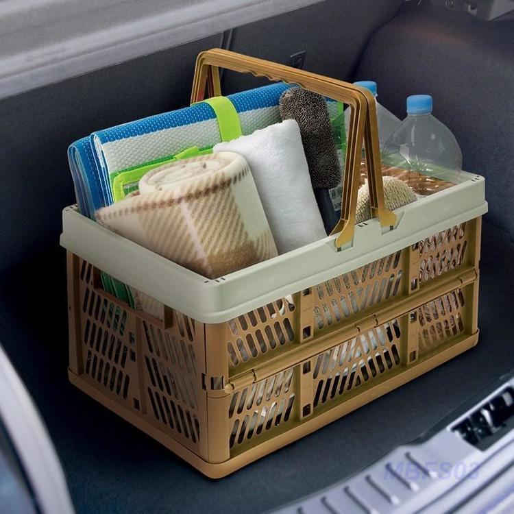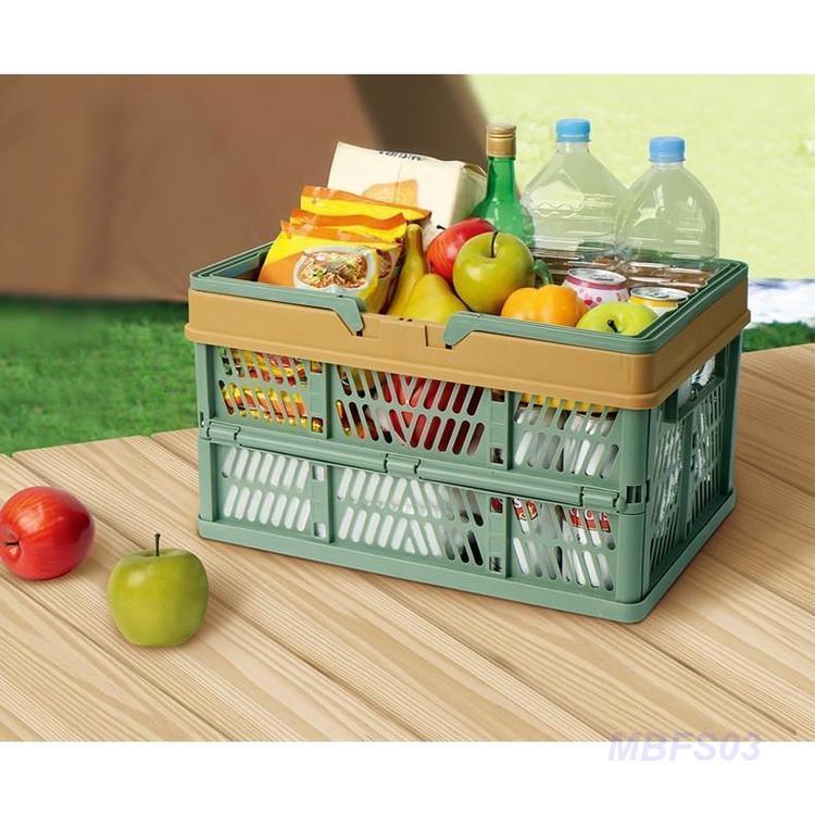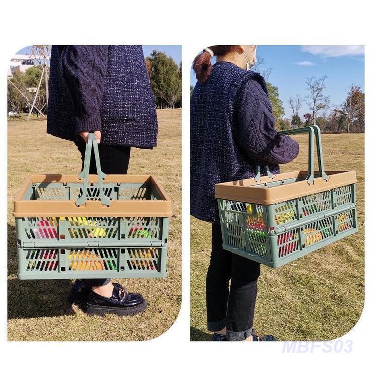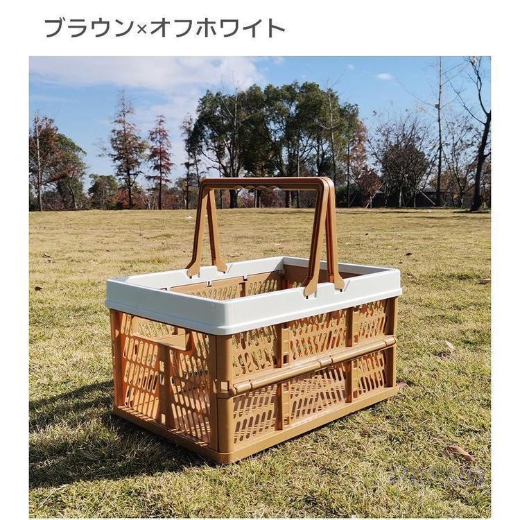 【特価】ピクニックバスケット 折りたたみ スタッキング コンテナ 収納ボックス 買い物かご 持ち手 取っ手付き アウトドア キャンプ バーベキュー プール 海