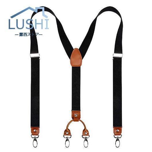 サスペンダー メンズ 男性用 Y型 ダブルクリップ 6クリップ ズボン吊り 吊りバンド 無地 シンプル カジュアル ダンディ おしゃれ かっこいい 1