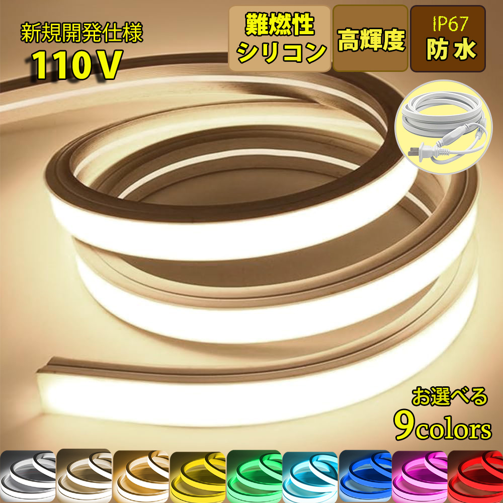 LEDテープライト シリコンチューブ 高輝度 チューブライト 防水 リニア発光 ストリップライト ネオンライト 曲がりやすい 目に優しい 間接照明 DIY 飾り 110V