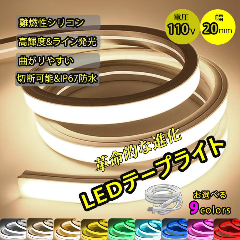 LEDテープライト シリコンチューブ 高輝度 チューブライト 防水 リニア発光 ストリップライト ネオンライト 曲がりやすい 目に優しい 間接照明 DIY 飾り 110V