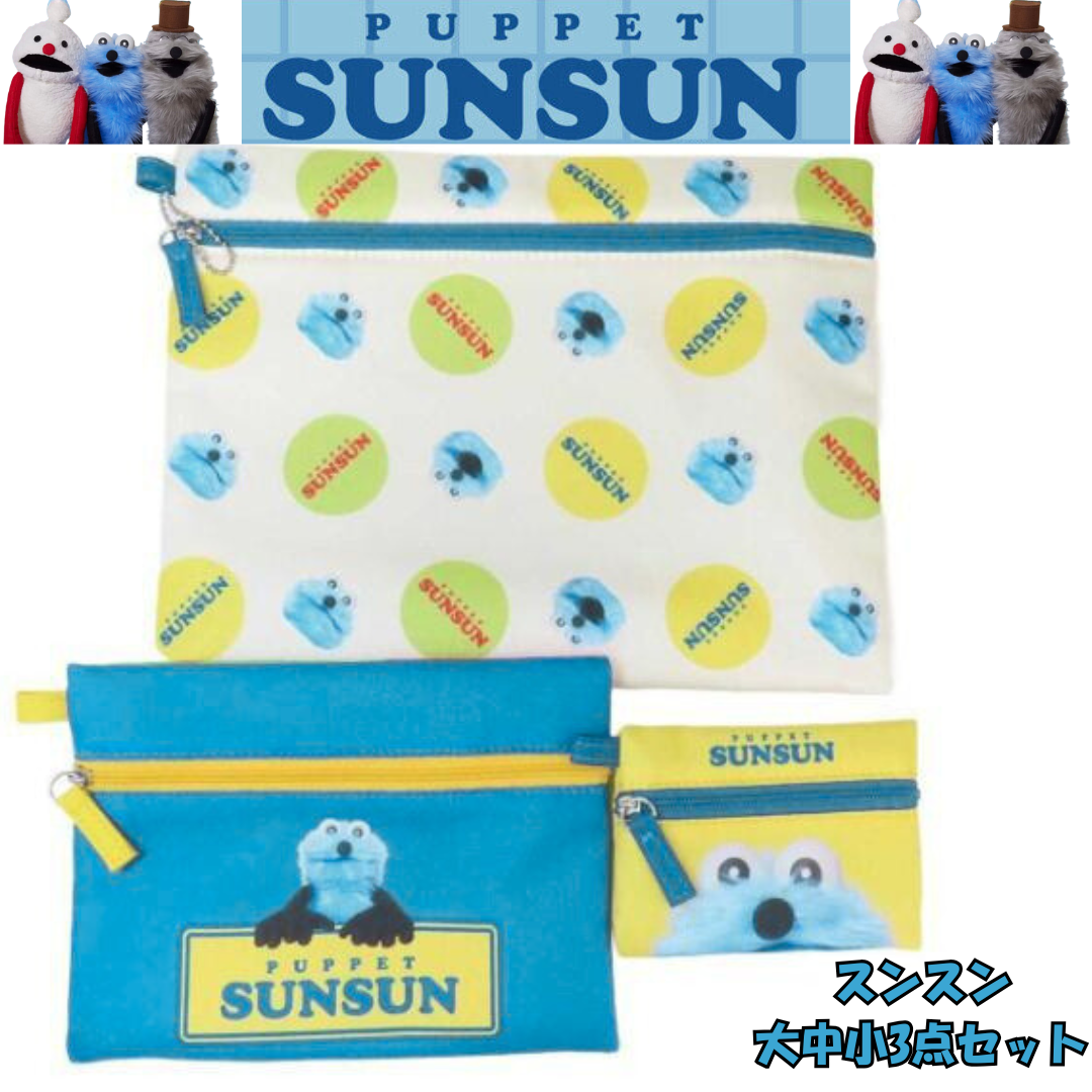 パペットスンスン3連ポーチ スンスン ポーチ大中小3点セット トラベルポーチ 小物入れ