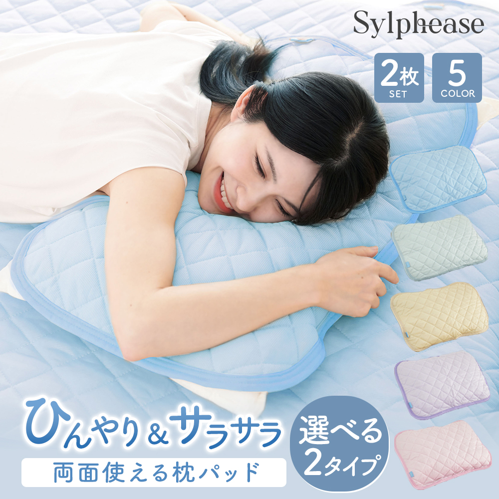 枕パッド 冷感 2枚セット リバーシブル 43×63cm タオル地 綿 オールシーズン クール ひんやり おしゃれ かわいい 接触冷感 パイル ゴム
