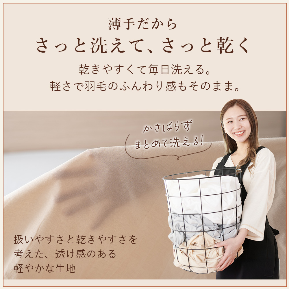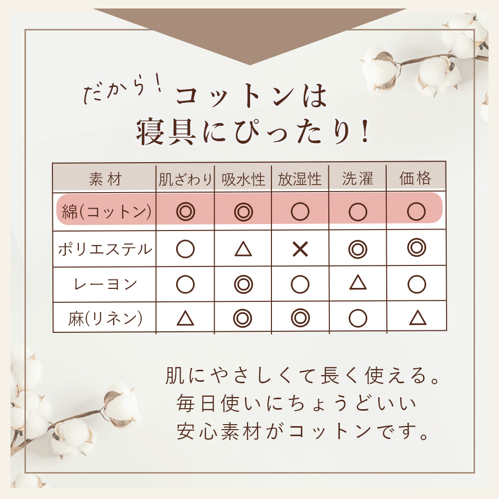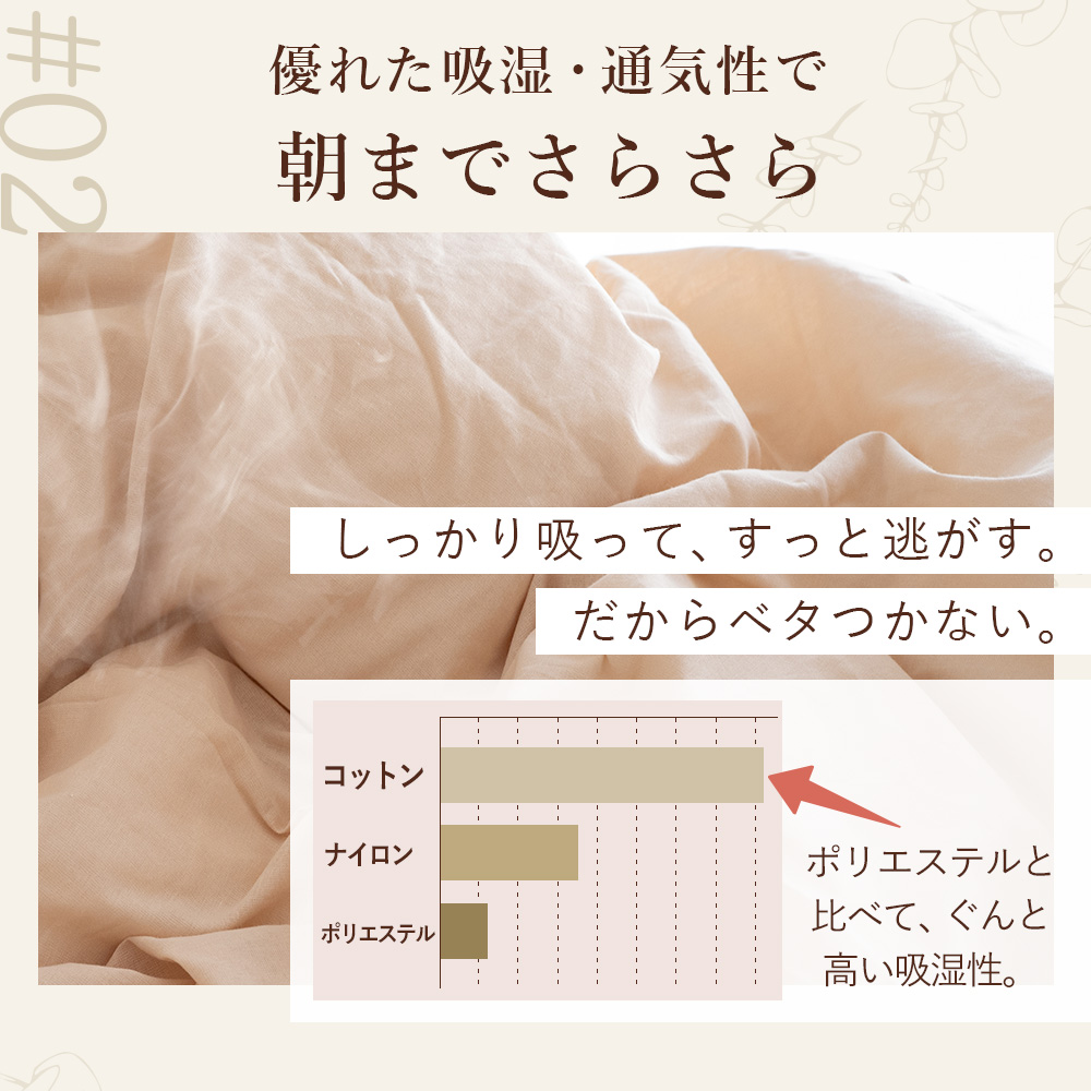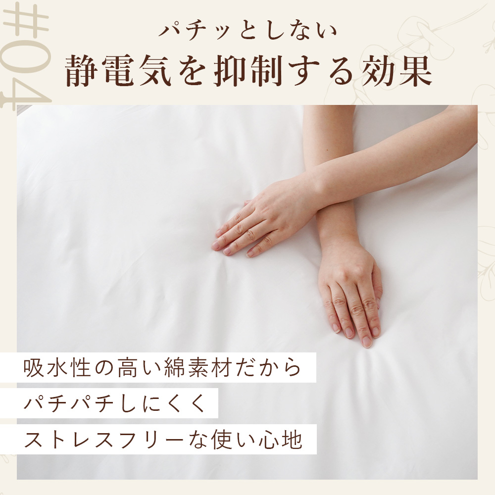 ・ファスナーは端まで開き出し入れ楽々。布団の角をしっかり固定できる8か所留め付きでカバーがずれにくく、吸水、保湿の優れたなめらかな綿は、通年お使いいただけます。