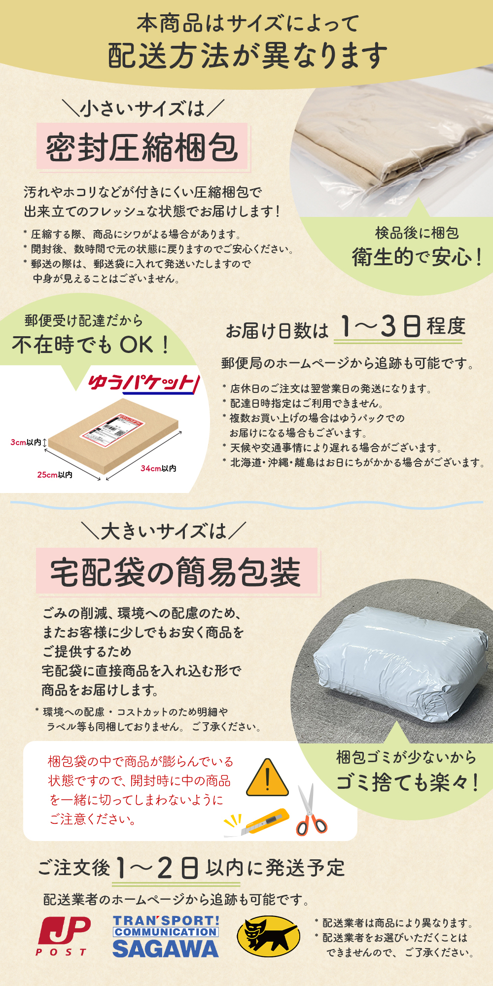 ・こだわり綿100%のナチュラル仕様ですので、赤ちゃん、子供からご年配の方まで安心、安全にお使いいただけます。