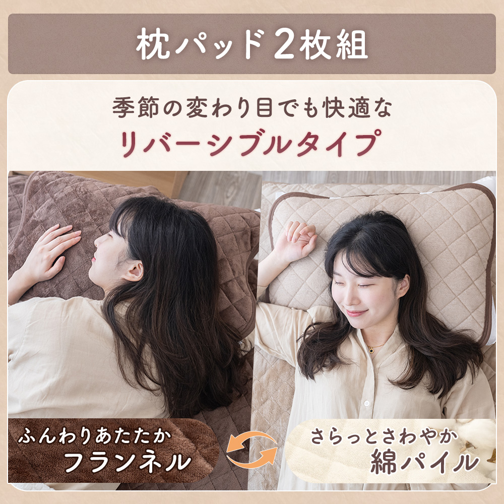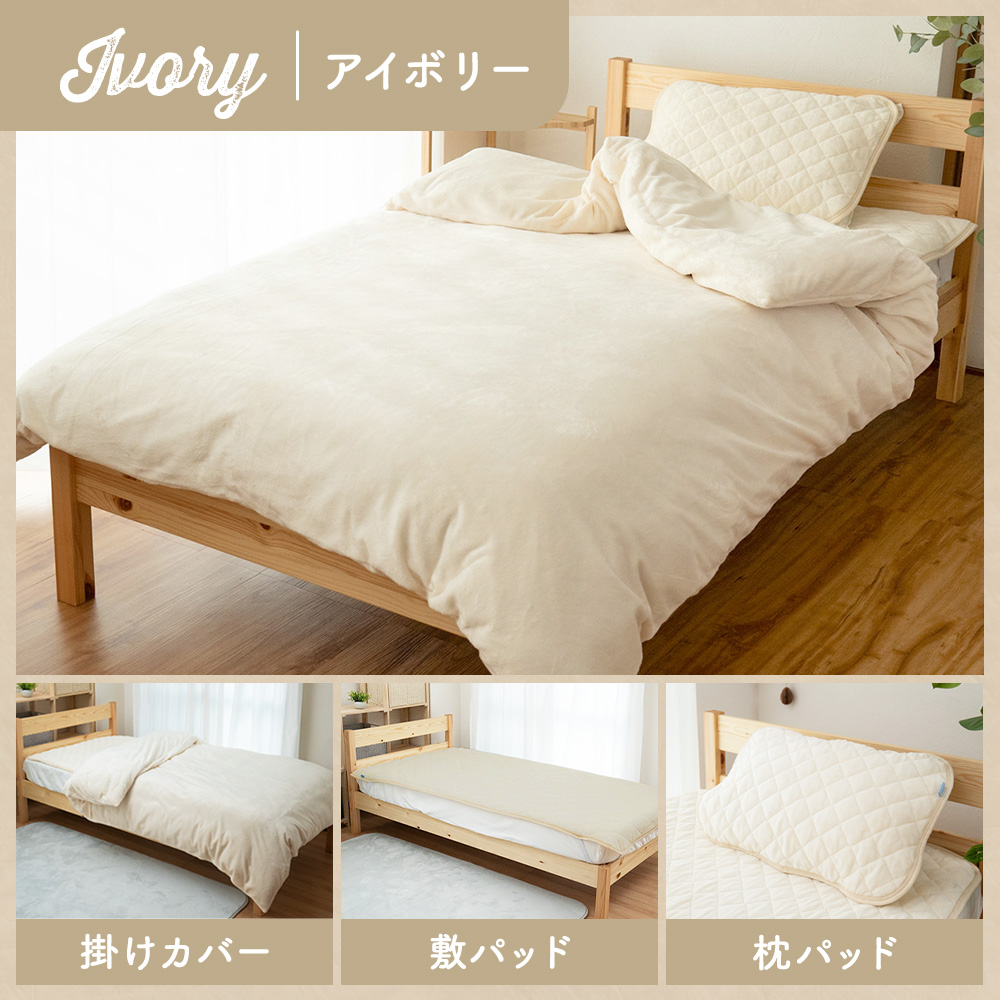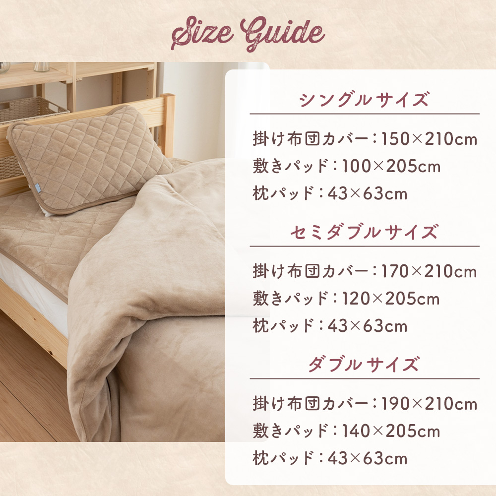 セミダブル:掛け布団カバー 170×210cm 敷きパッド:120×205cm 枕パッド:43×63cm(2枚セット)