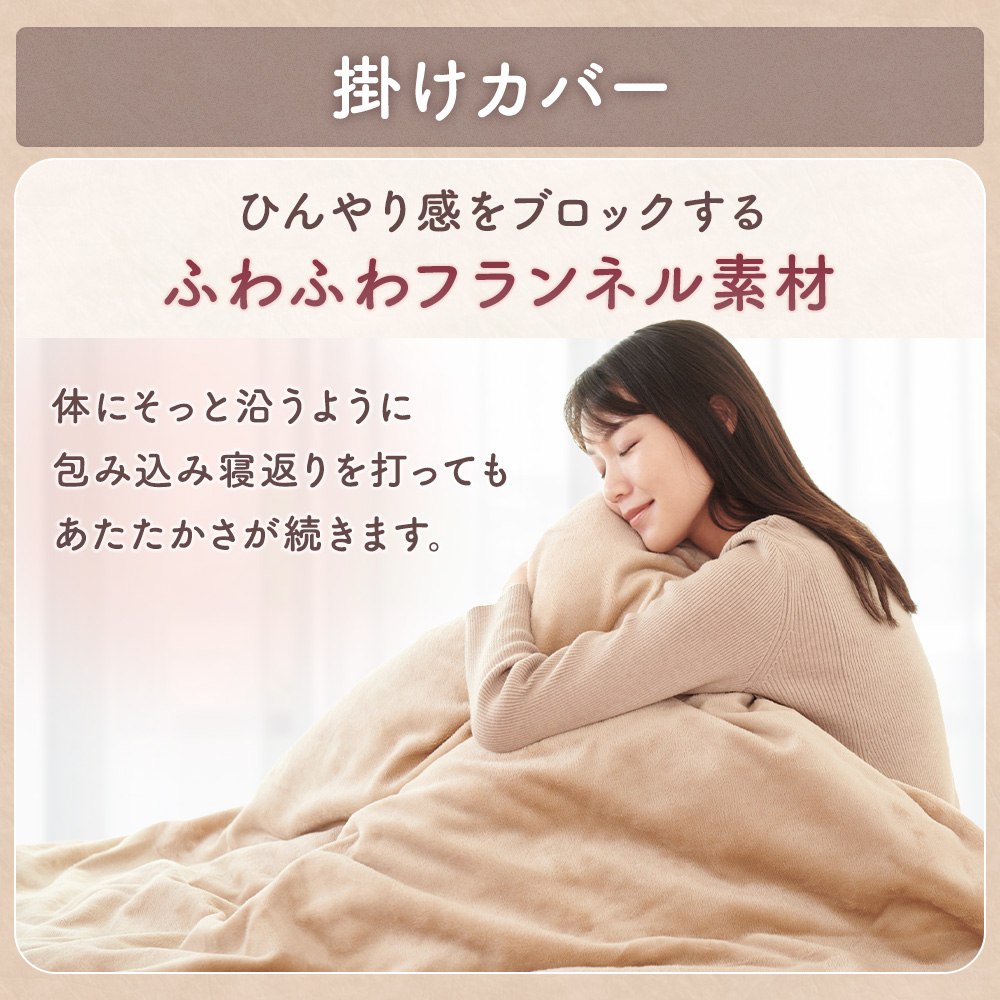 ・掛けカバーは、全開ファスナー&6箇所の紐付き。出し入れ楽々で布団のズレを防げるストレスフリーな作りです。