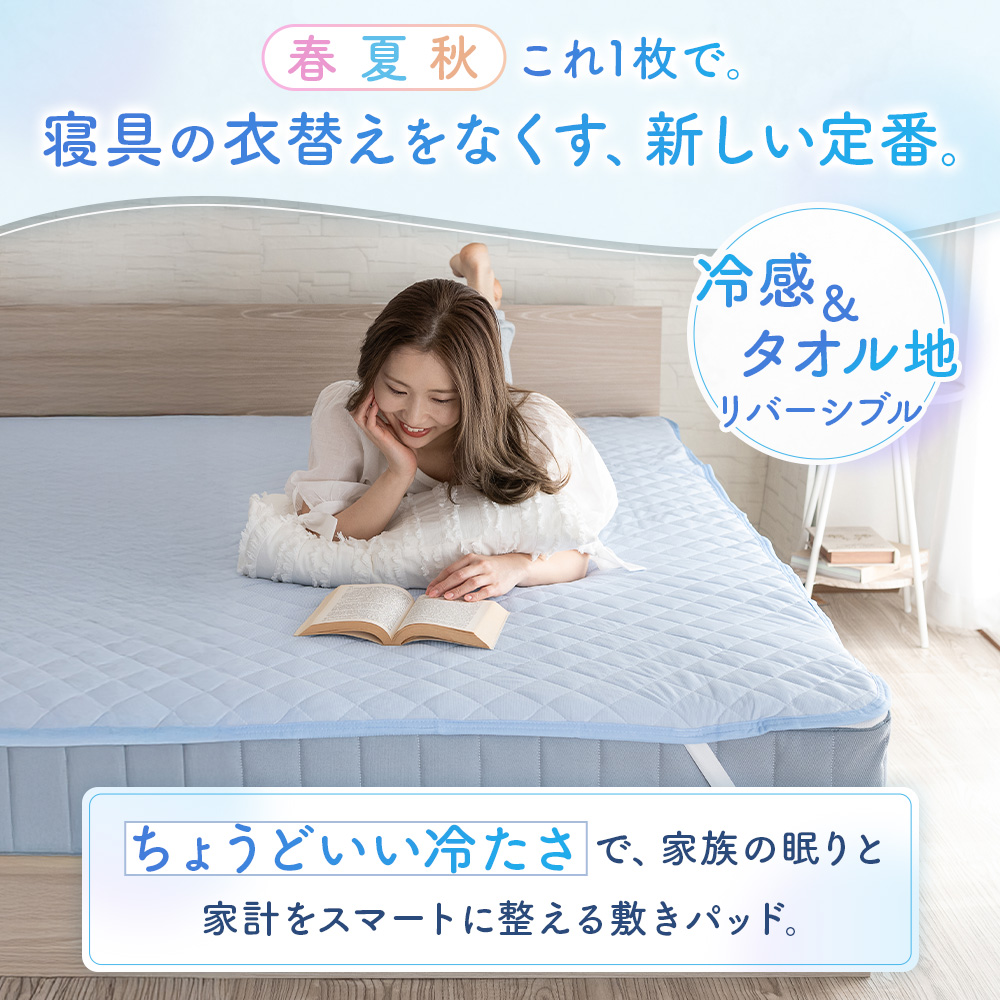 敷きパッド セミダブル 120×200cm リバーシブル 夏 冷感 ひんやり クール ウォッシャブル 冷感 ベッドパッド シーツ ベッドパッド