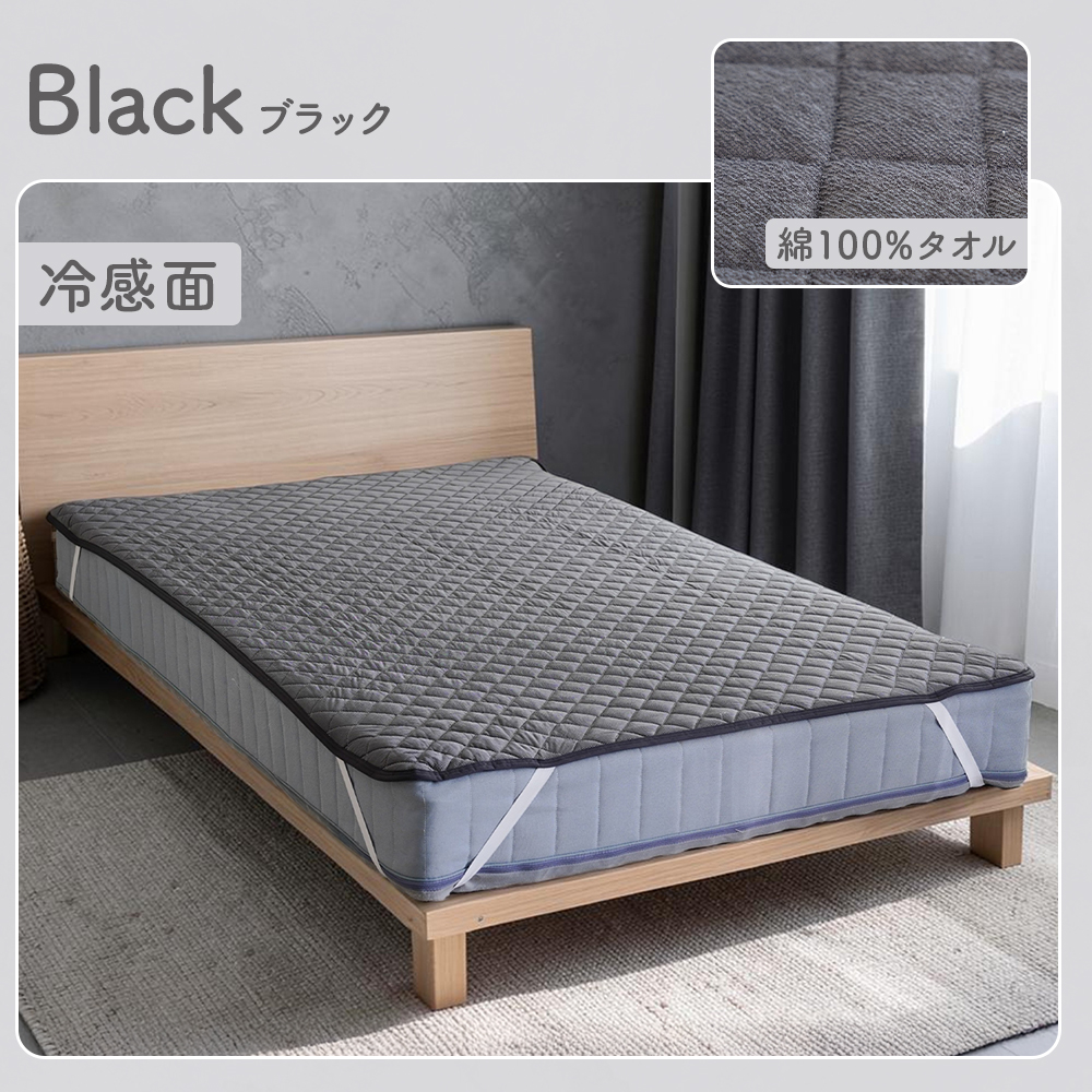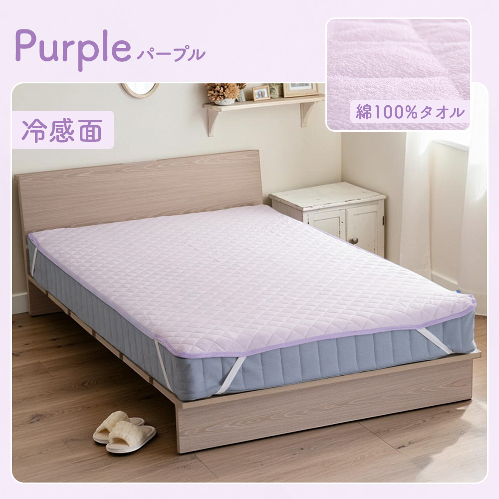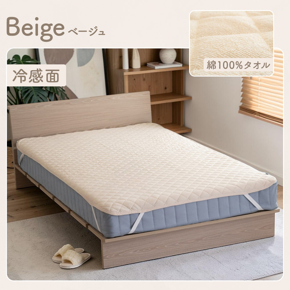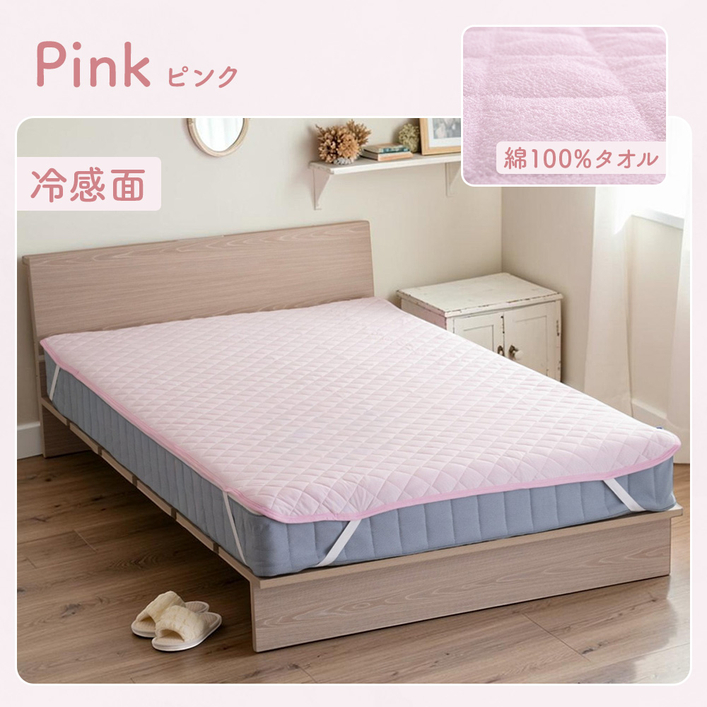 ・冷感とタオル地のリバーシブル仕様。表面はひんやり冷たい接触冷感生地、裏面はさらさら快適な綿タオル地だから、通年使えます。