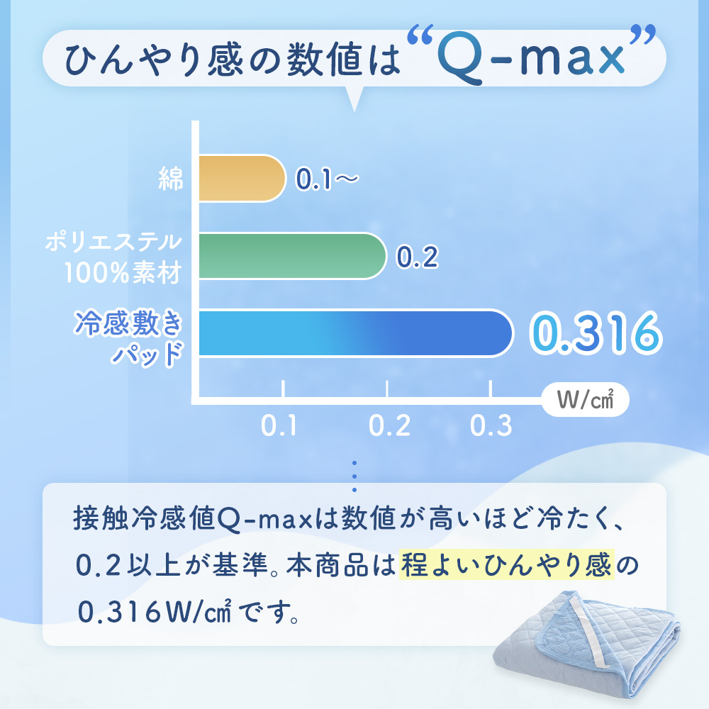 ・Qmax 0.316 エアコンが苦手な方でも快適に。節電・節約にもつながる環境にも優しい寝具です。