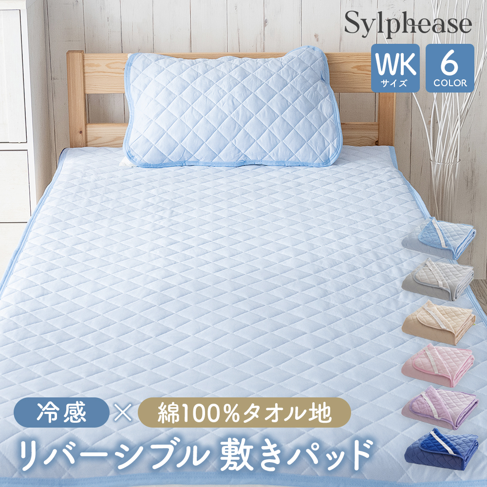 敷きパッド ワイドキング 200×200cm リバーシブル 夏 冷感 ひんやり クール ウォッシャブル 冷感 ベッドパッド シーツ ベッドパッド