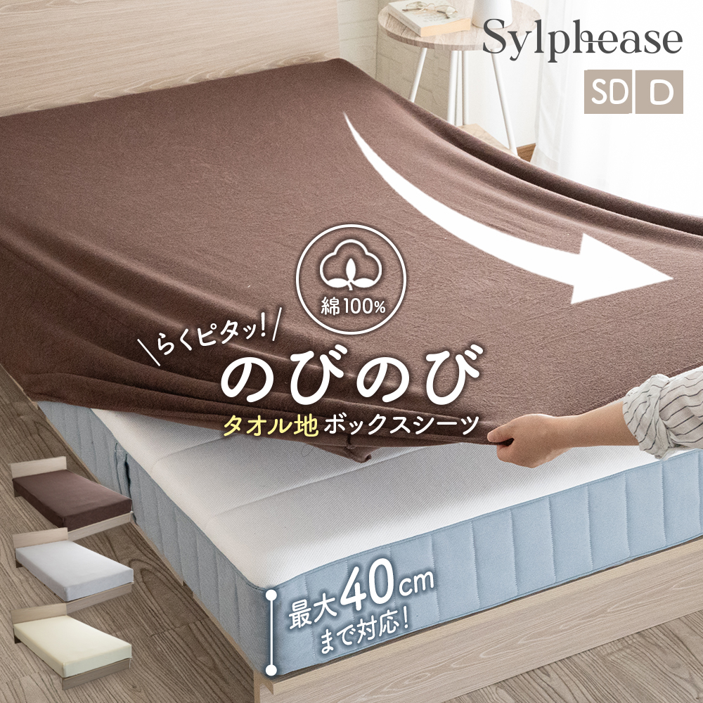在庫処分20%OFF ボックスシーツ のびのびボックスシーツ タオル地 綿100 セミダブル ダブル のびのびタオル地ボックスシーツ 洗える 綿 タオル