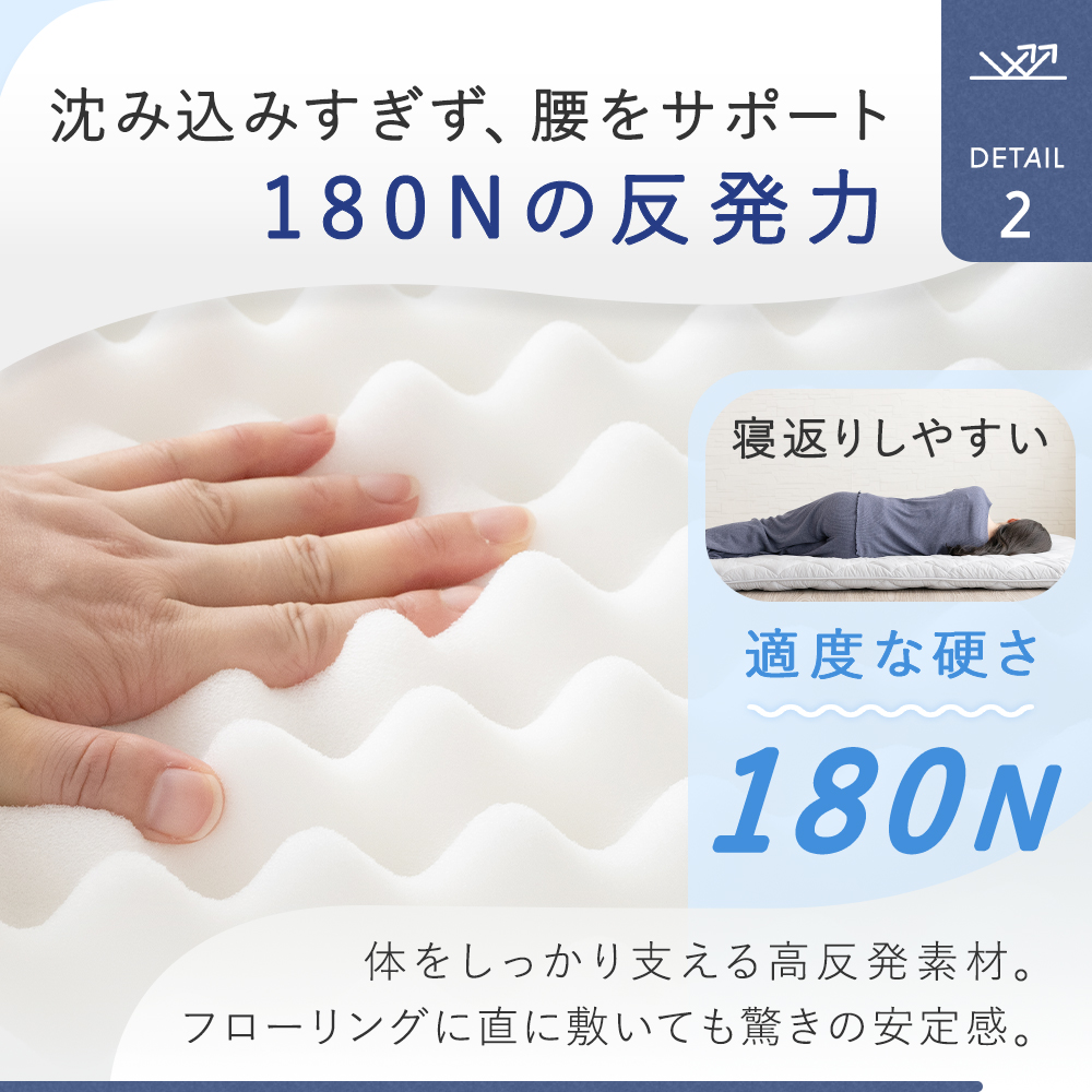 ・中材:巻き綿2kg / 高反発ウレタン(硬さ180ニュートン / 密度18D)