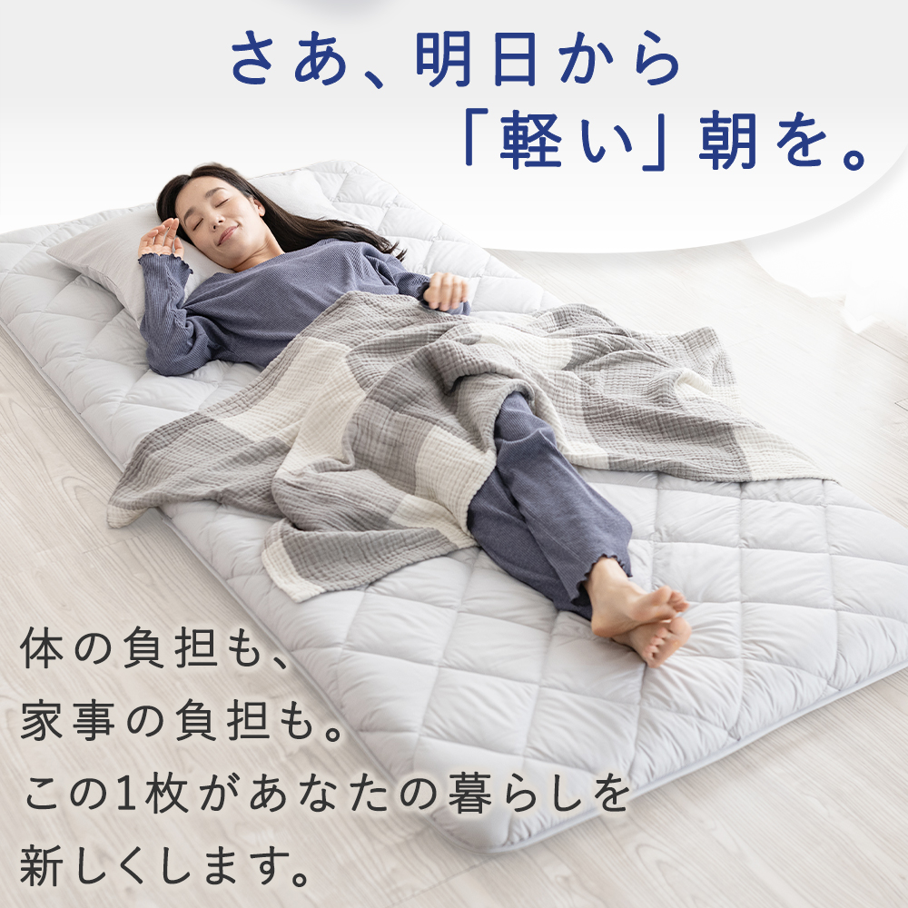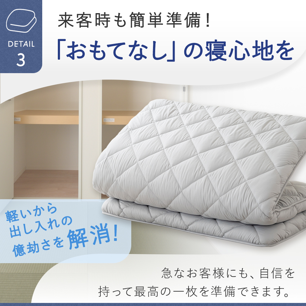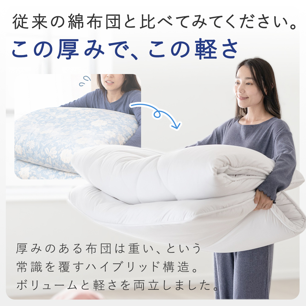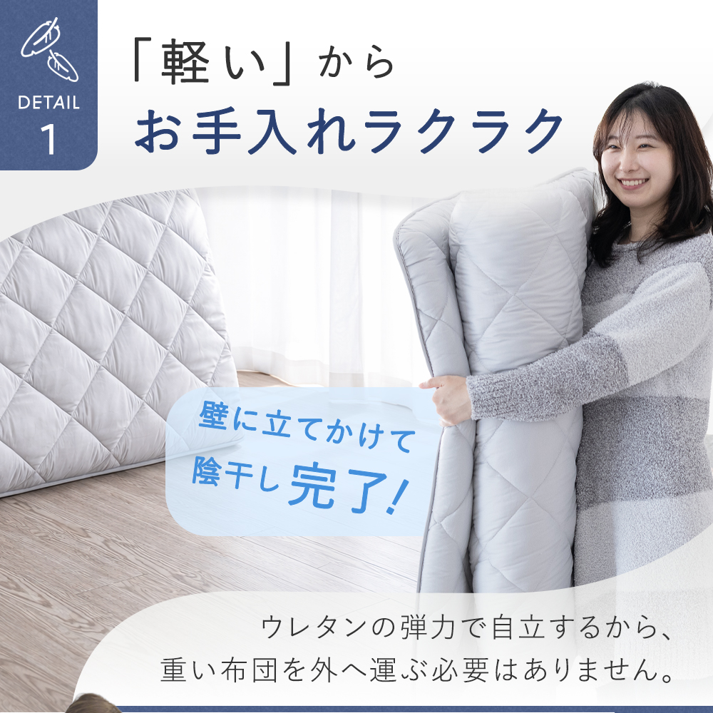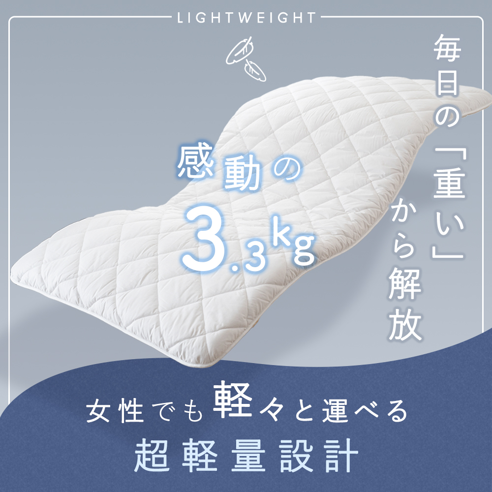 【ふんわりボリュームと軽さを両立】極厚約9cmのボリューム感ながら、中材にウレタンを採用することで軽量化を実現。