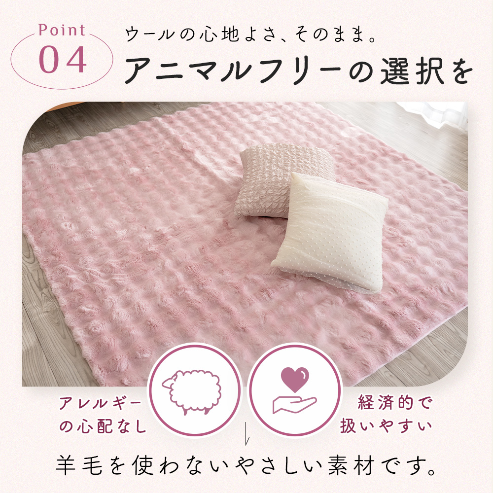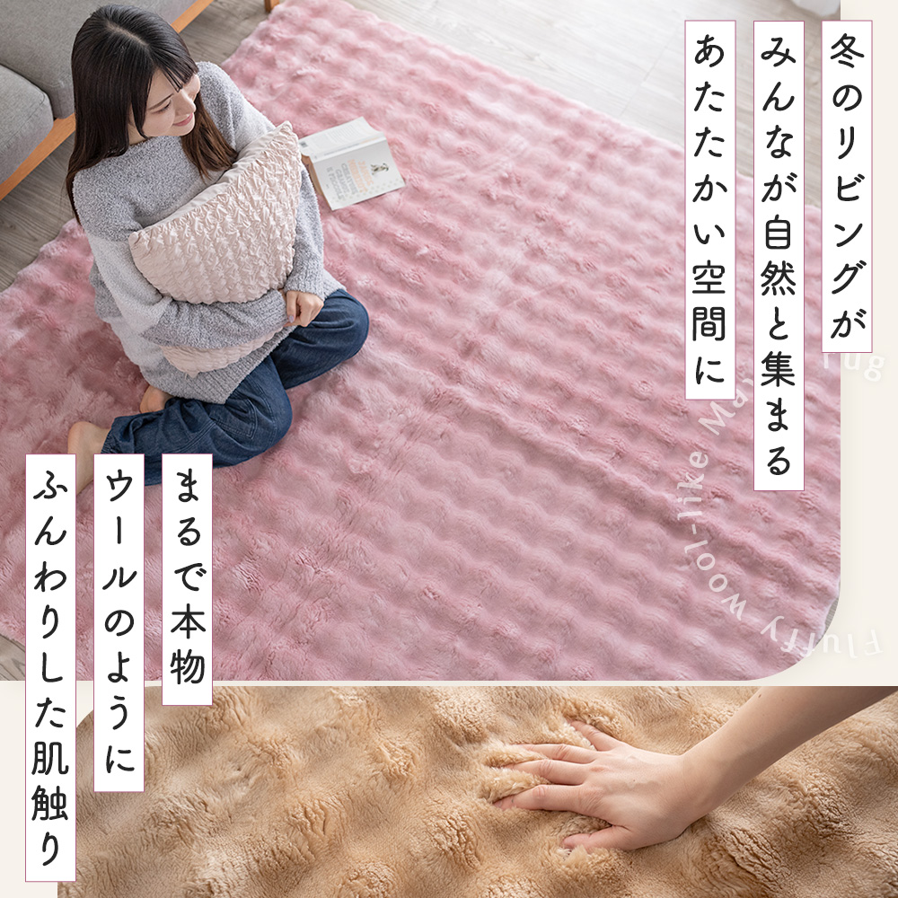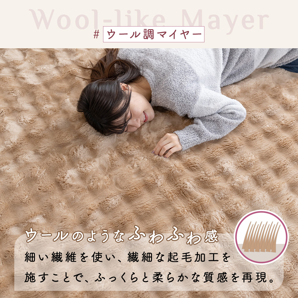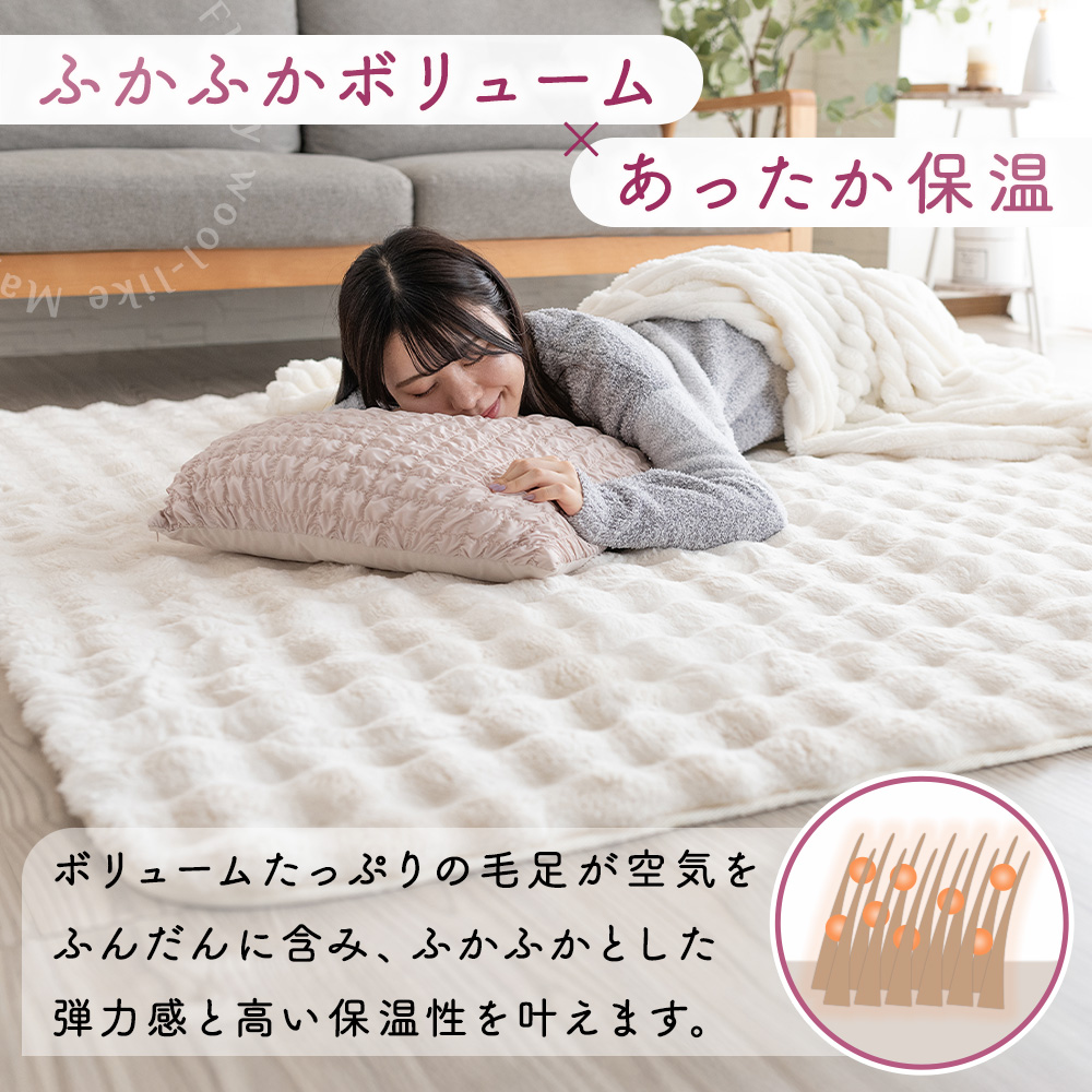 【まるでウールのようなふわもこ質感】やわらかくボリュームのあるウール調マイヤー生地を使用したラグ