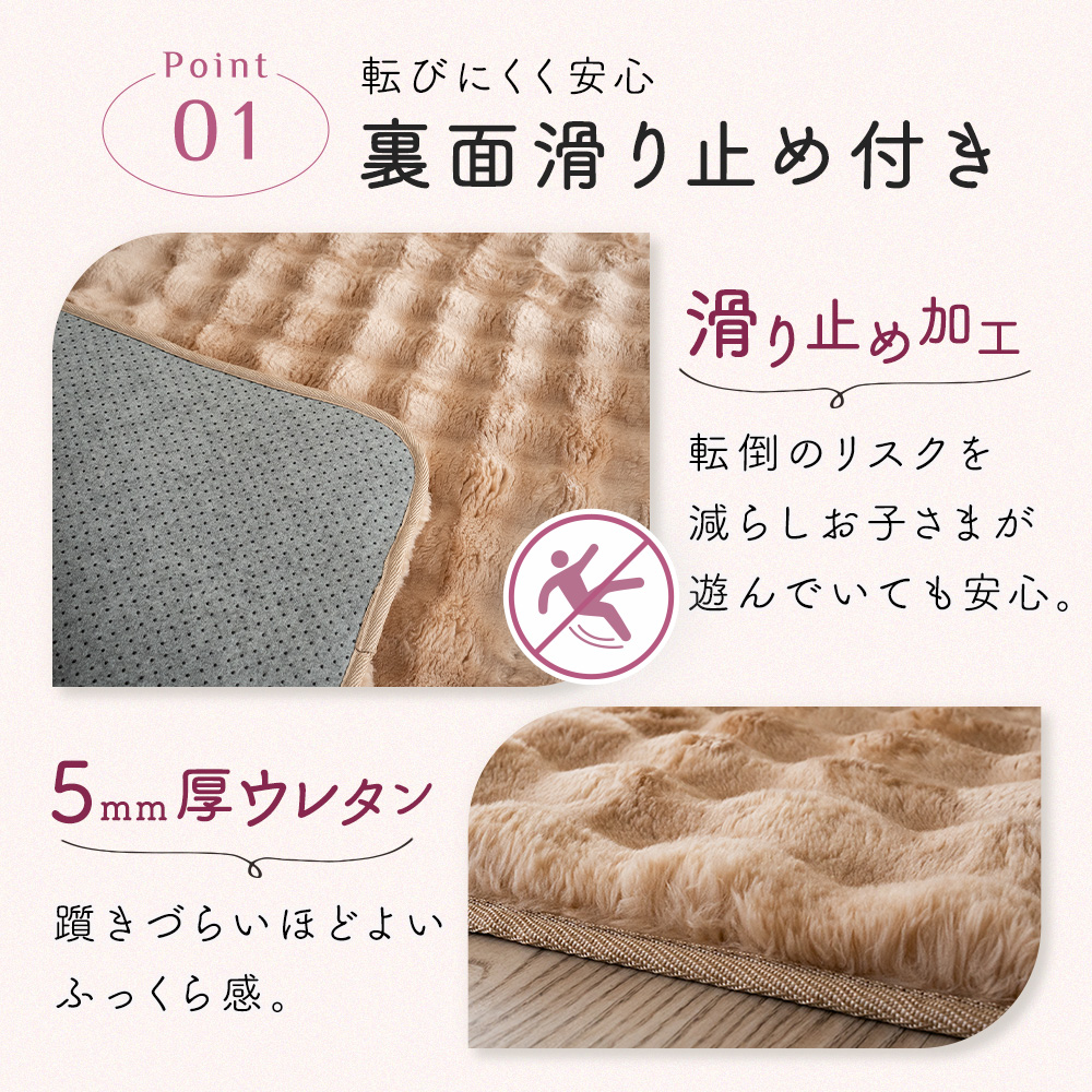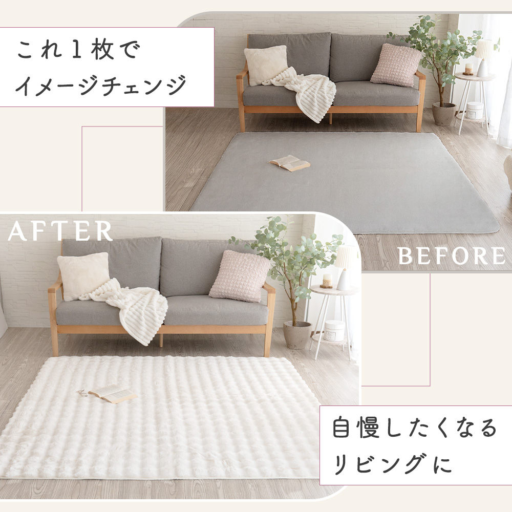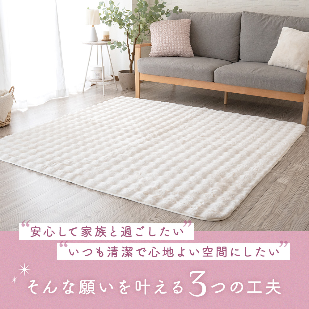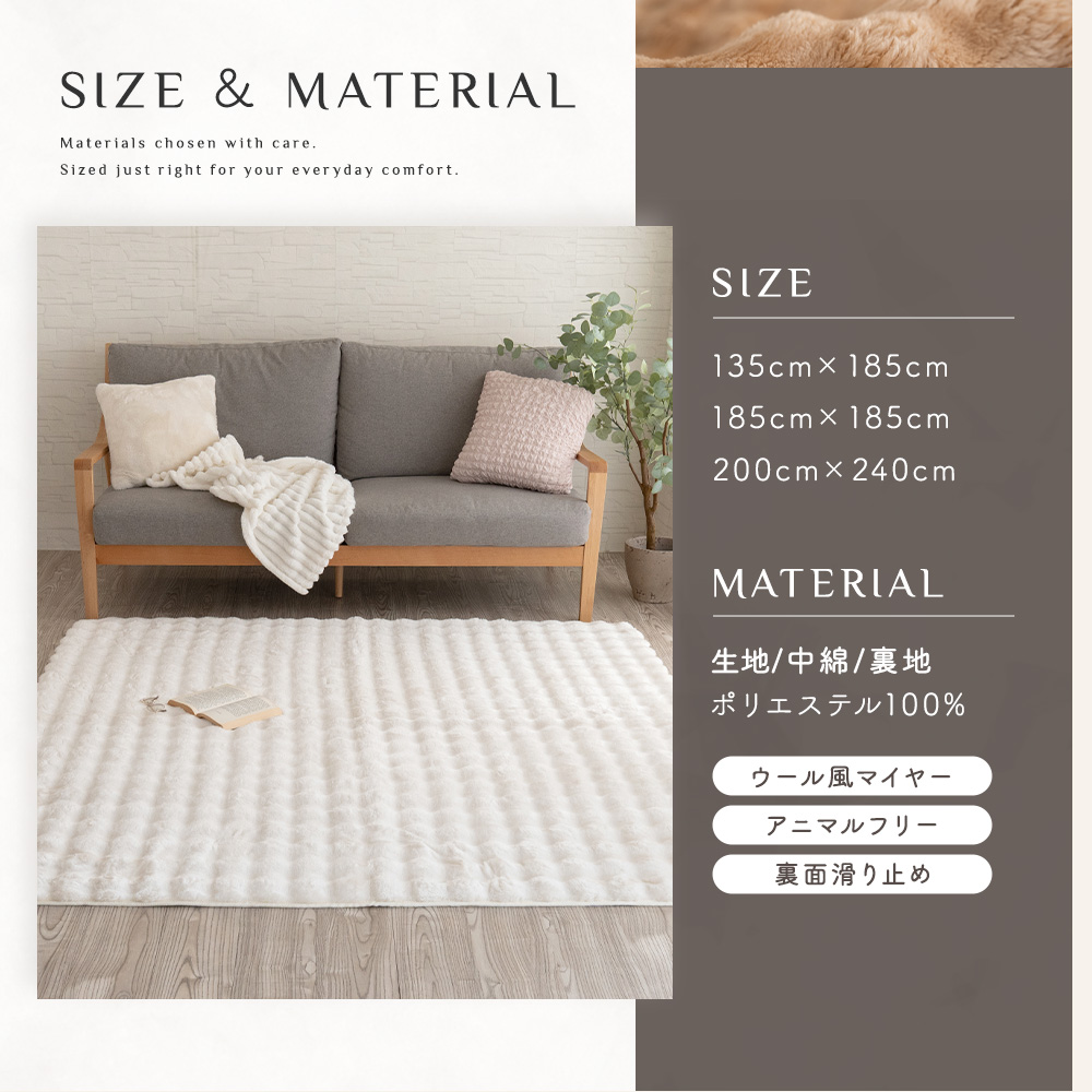 【まるでウールのようなふわもこ質感】やわらかくボリュームのあるウール調マイヤー生地を使用したラグ