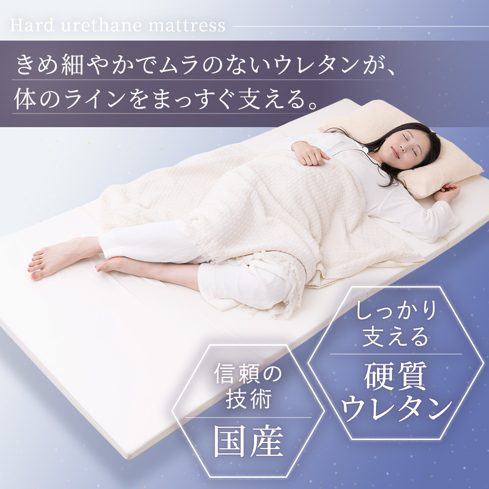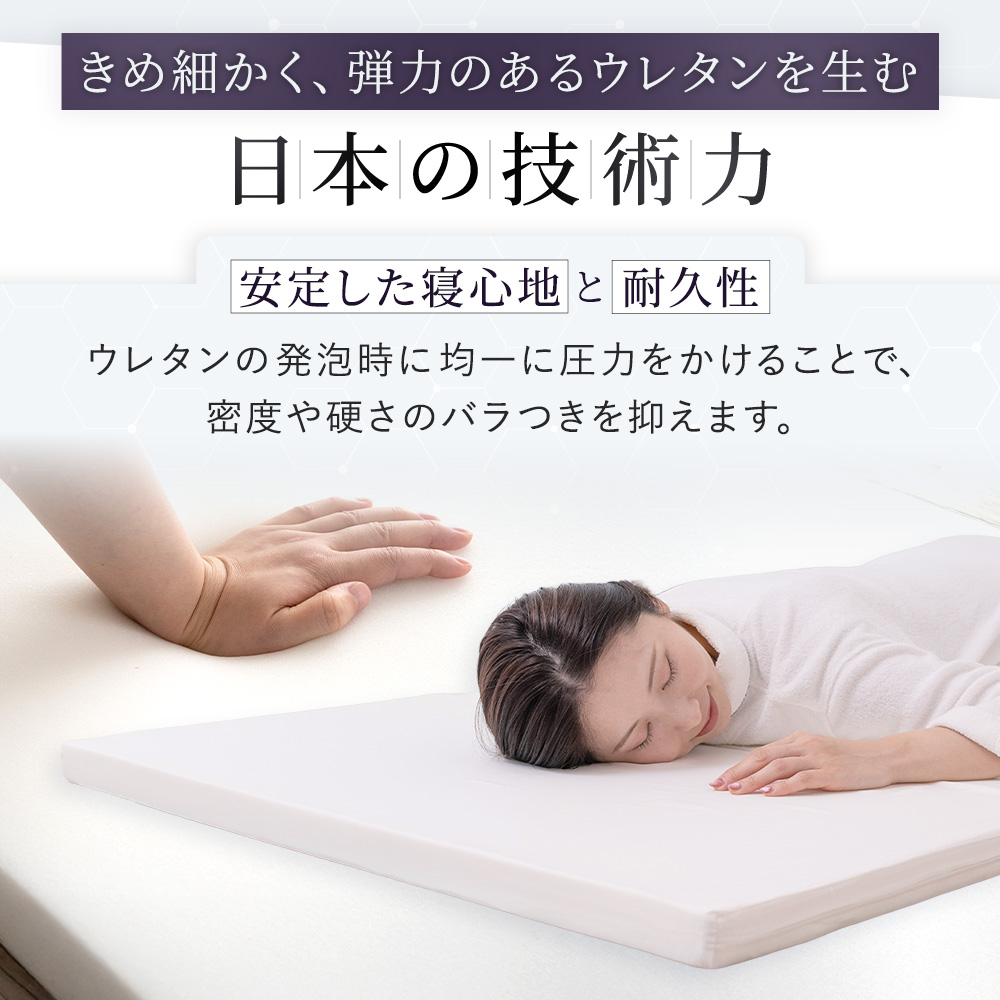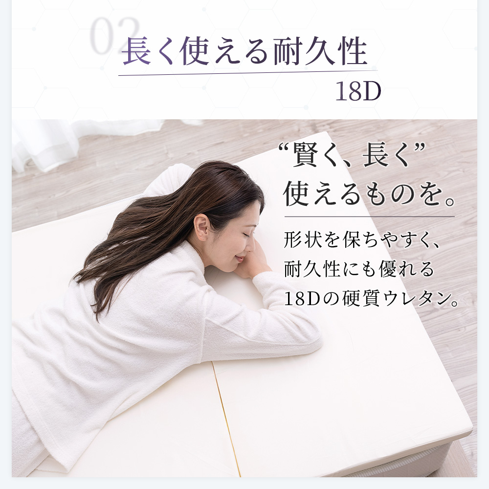日本の工場で丁寧に発泡された硬質ウレタンを使用しており、身体をしっかり支える力が特長です。