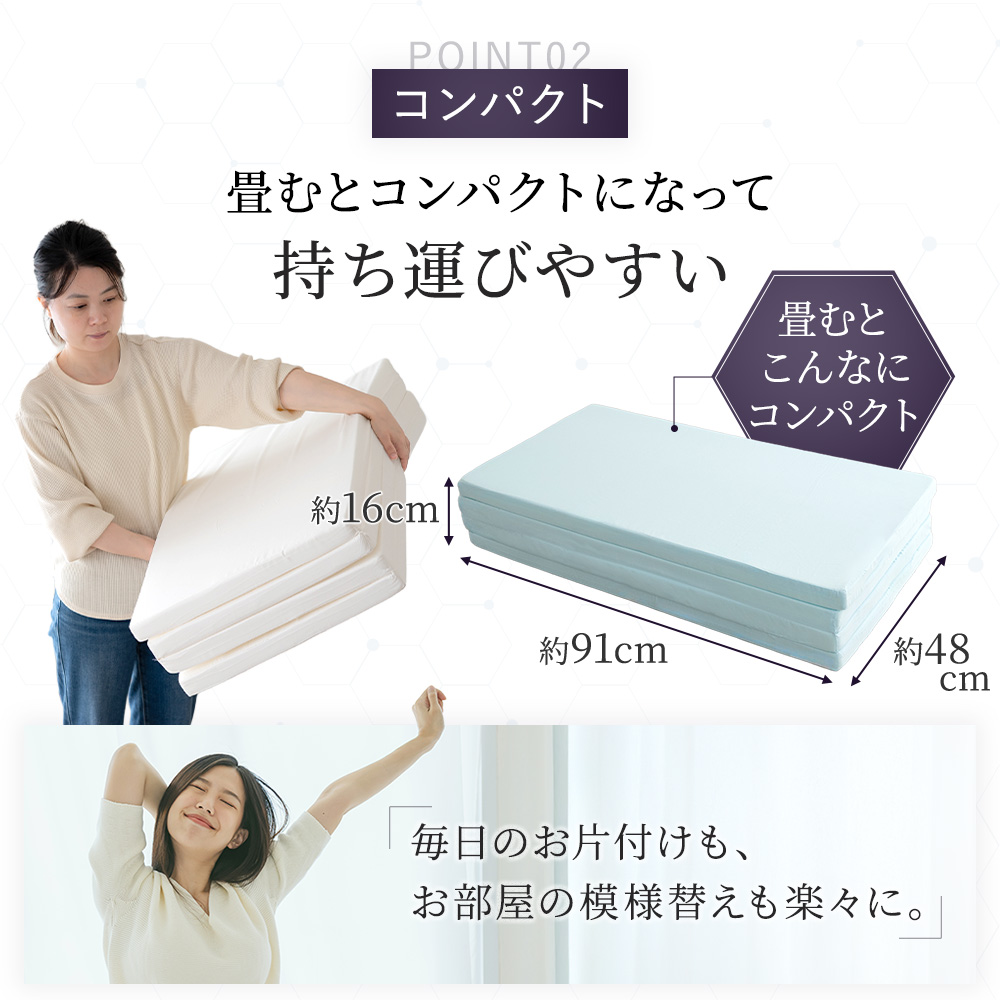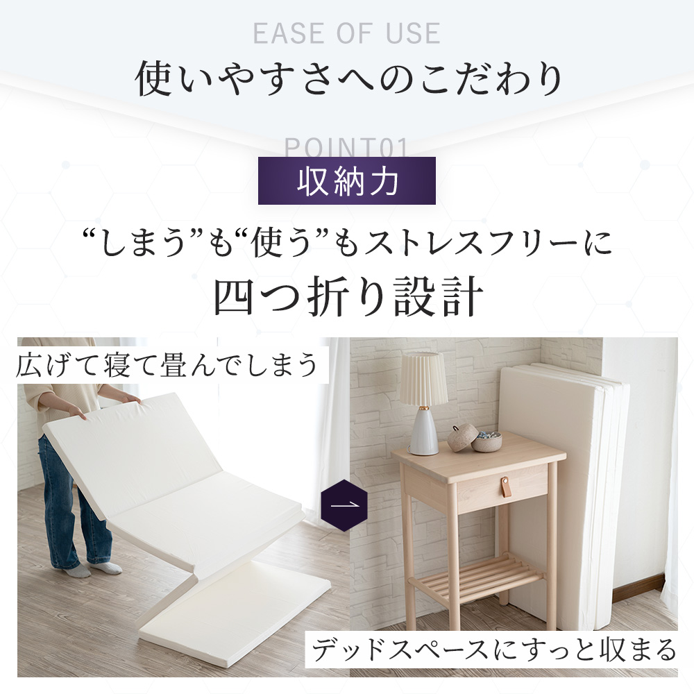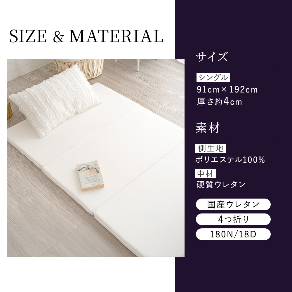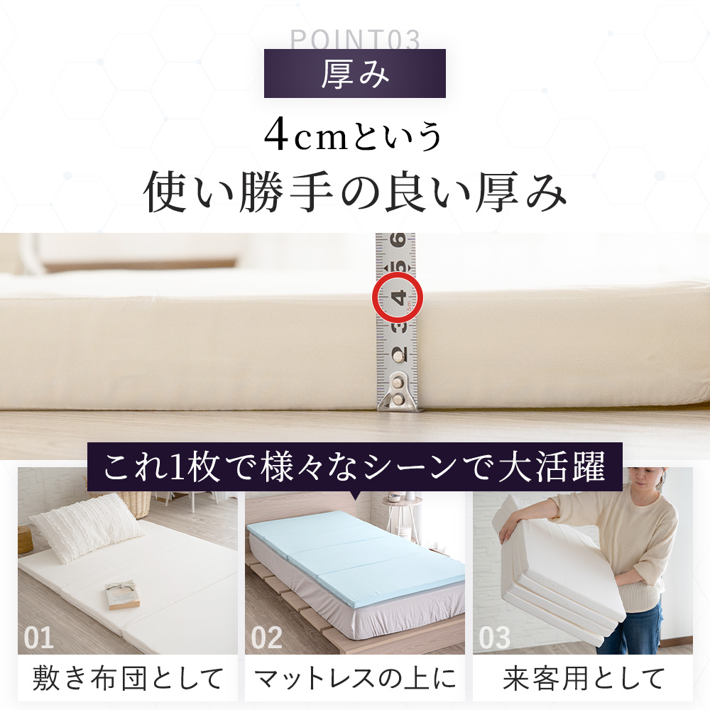 マットレス 折りたたみ 日本製 四つ折り 4つ折り 高反発 国産 マットレストッパー シングル コンパクト 敷きふとん 敷布団 底付き防止 厚み4cm ベッドマットレス