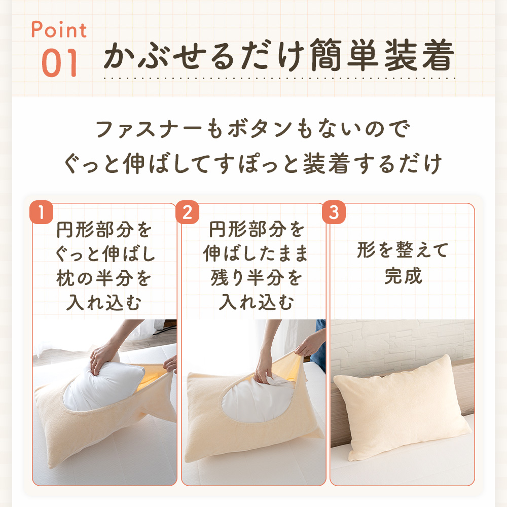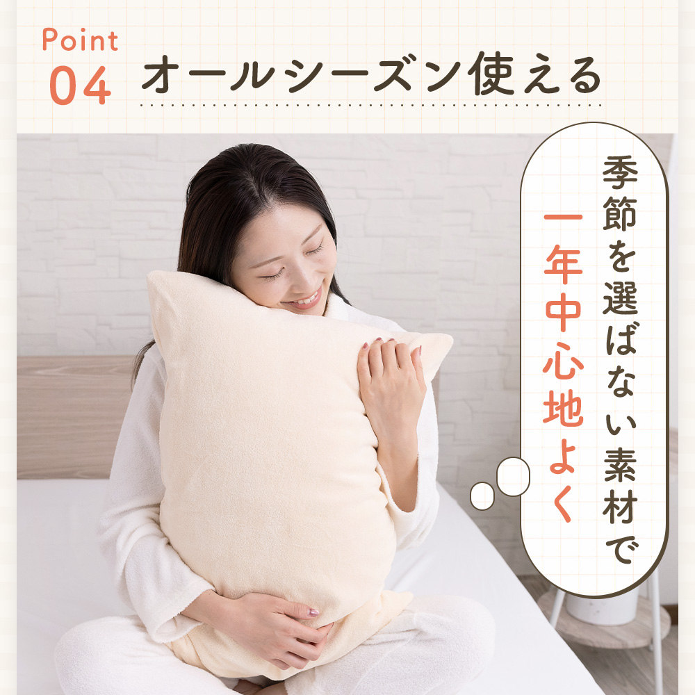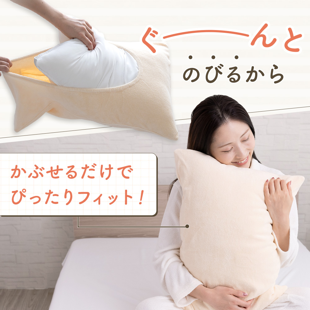 冬はふんわり厚手であたたかく、オールシーズン使えるのびる枕カバーとして活躍します。