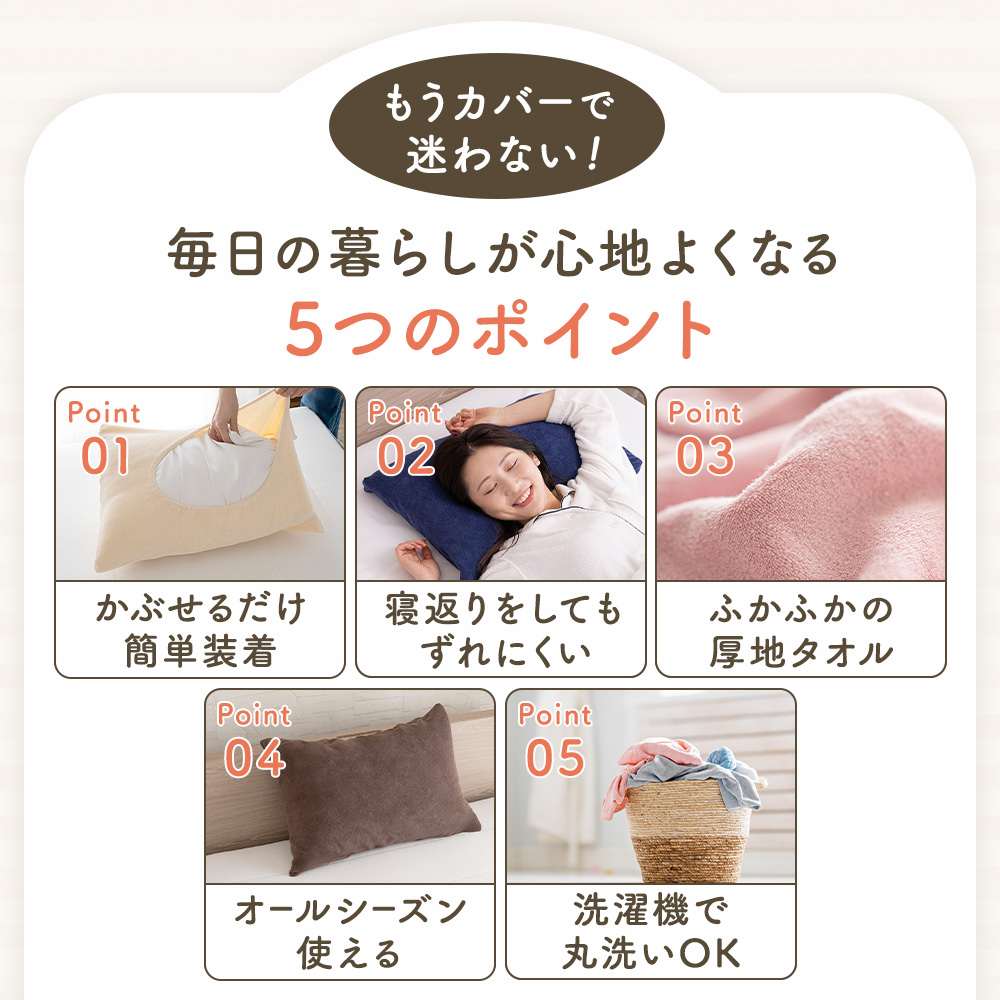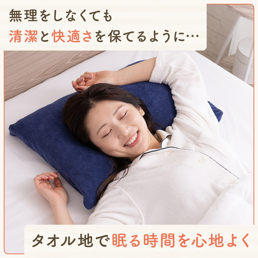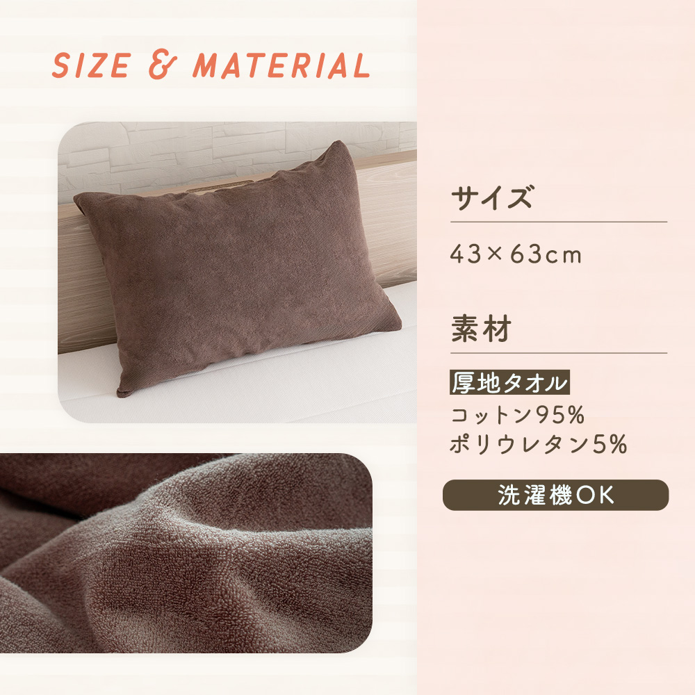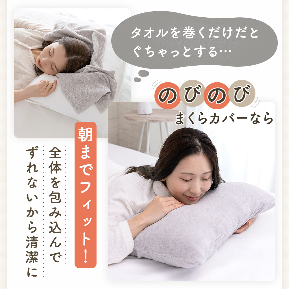 のびのび 枕カバー のびる タオル地 パイル タオル 厚手 綿 コットン 43×63cm 伸縮性 フィット ズレない 洗える 洗濯機OK