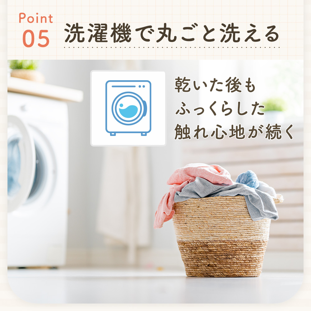 家庭用の洗濯機で丸洗いできます。洗濯ネットをご使用の上、他のものと分けて洗うことをお勧めします。漂白剤の使用とタンブラー乾燥は避けてください。