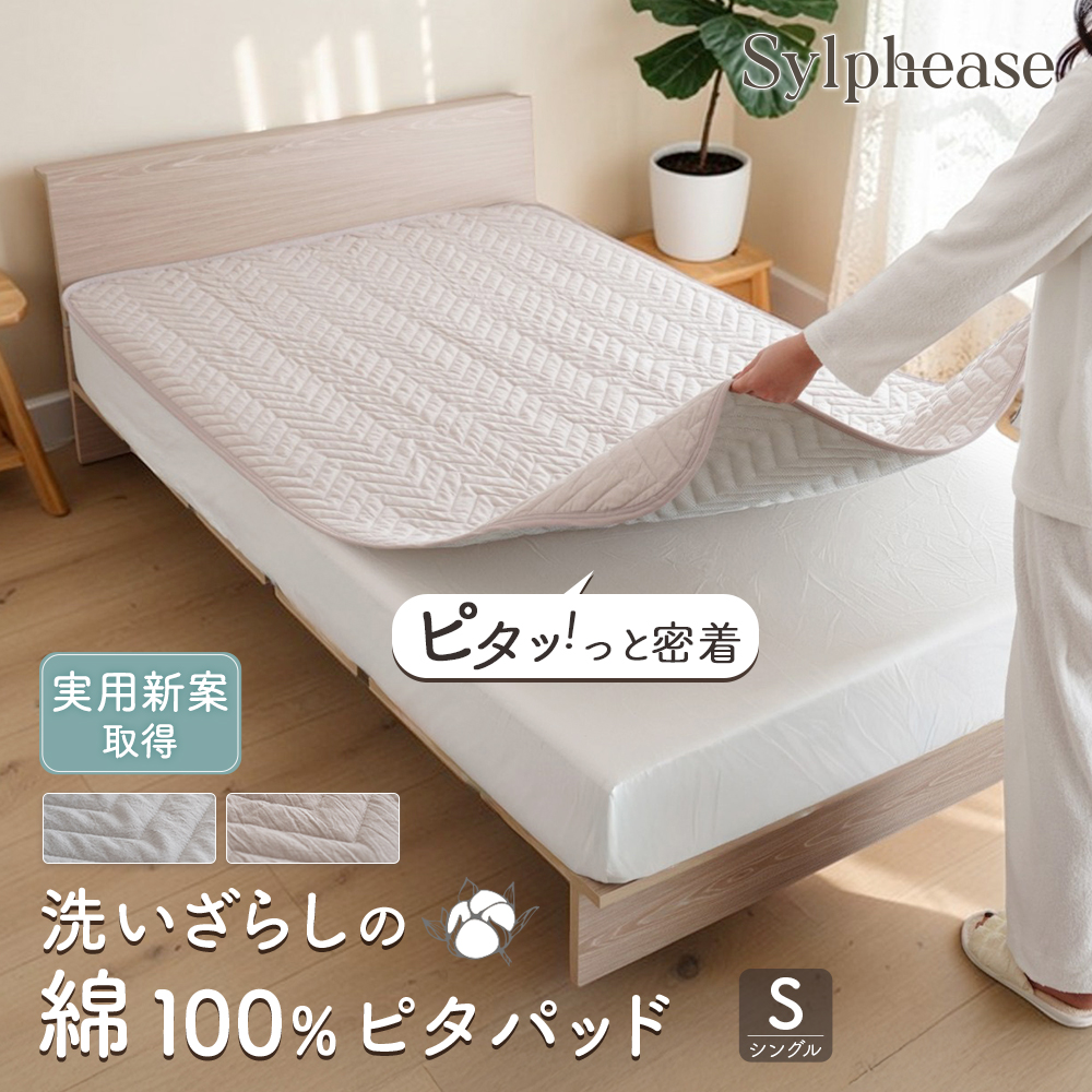 敷きパッド シングル 綿100% ゴムなし 置くだけ ズレない 滑り止め 洗える コットン ベッドパッド ゴムなし
