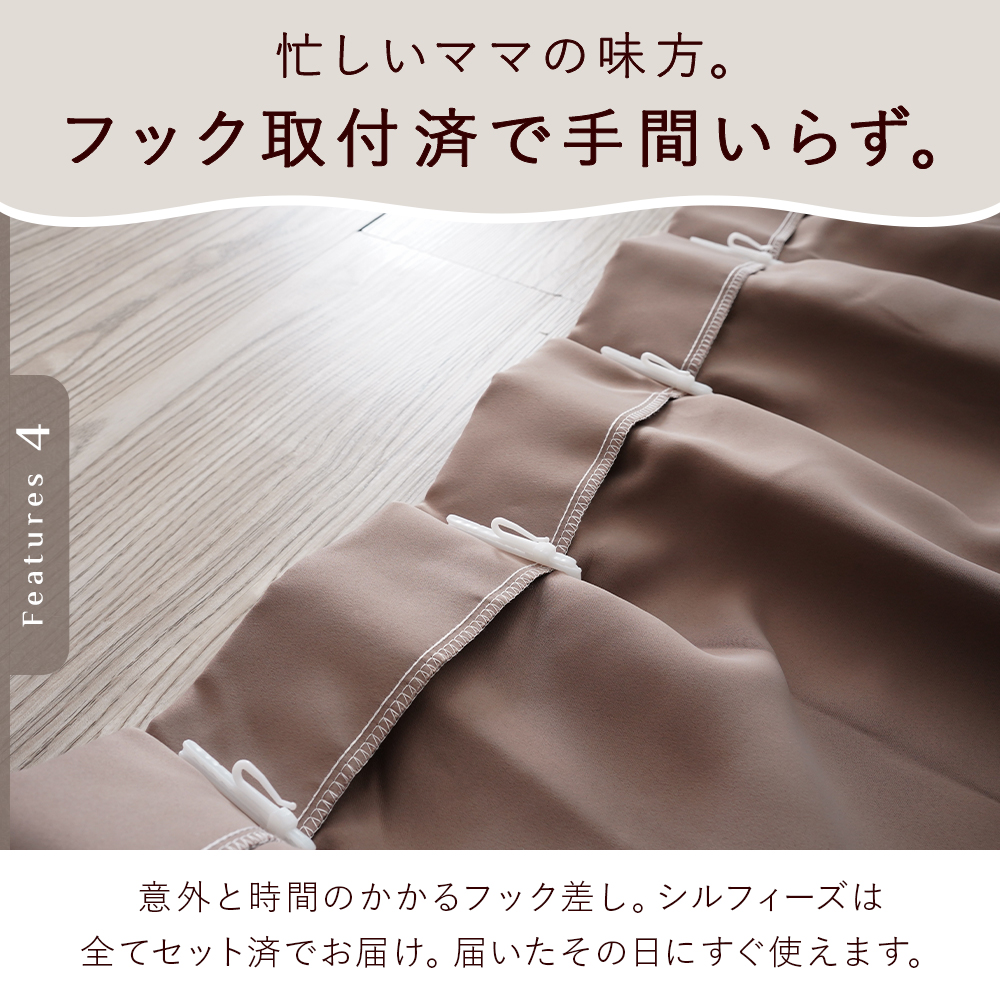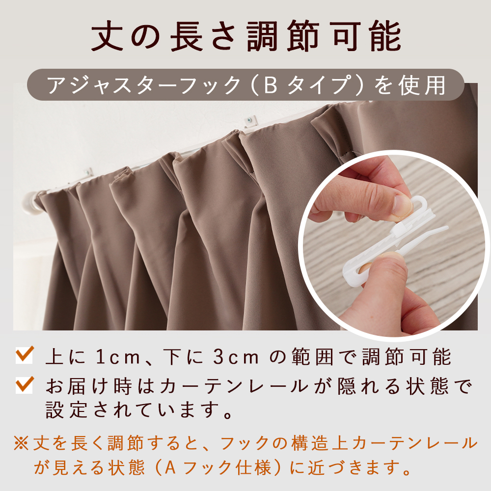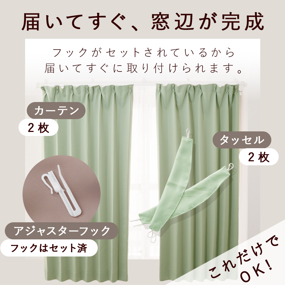 セット内容:カーテン2枚、タッセル2本、アジャスターフック付属(装着済み)