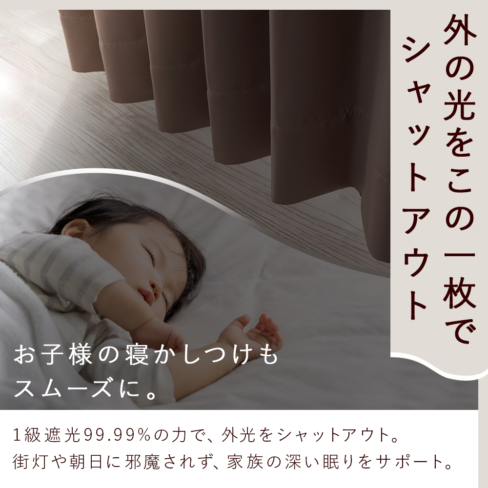 寝かしつけや朝の二度寝も、光に邪魔されない快適な眠りへ。