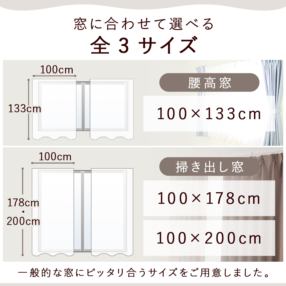 サイズ展開(幅×丈):100×135cm/100×178cm/100×200cm
