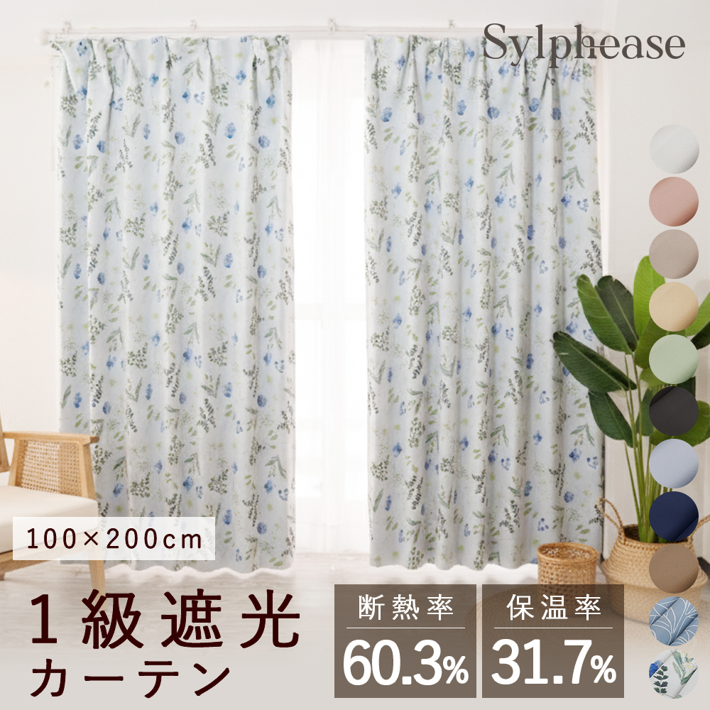 遮光カーテン 1級遮光 2枚セット 断熱 保温 洗える 北欧 花柄 厚手 寝室 子供部屋 幅100 丈200 アジャスター おしゃれ