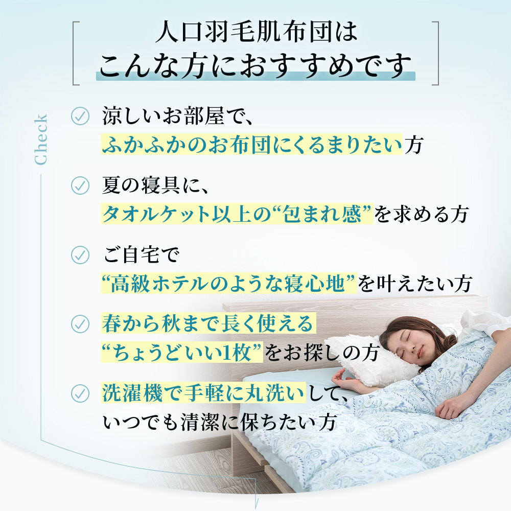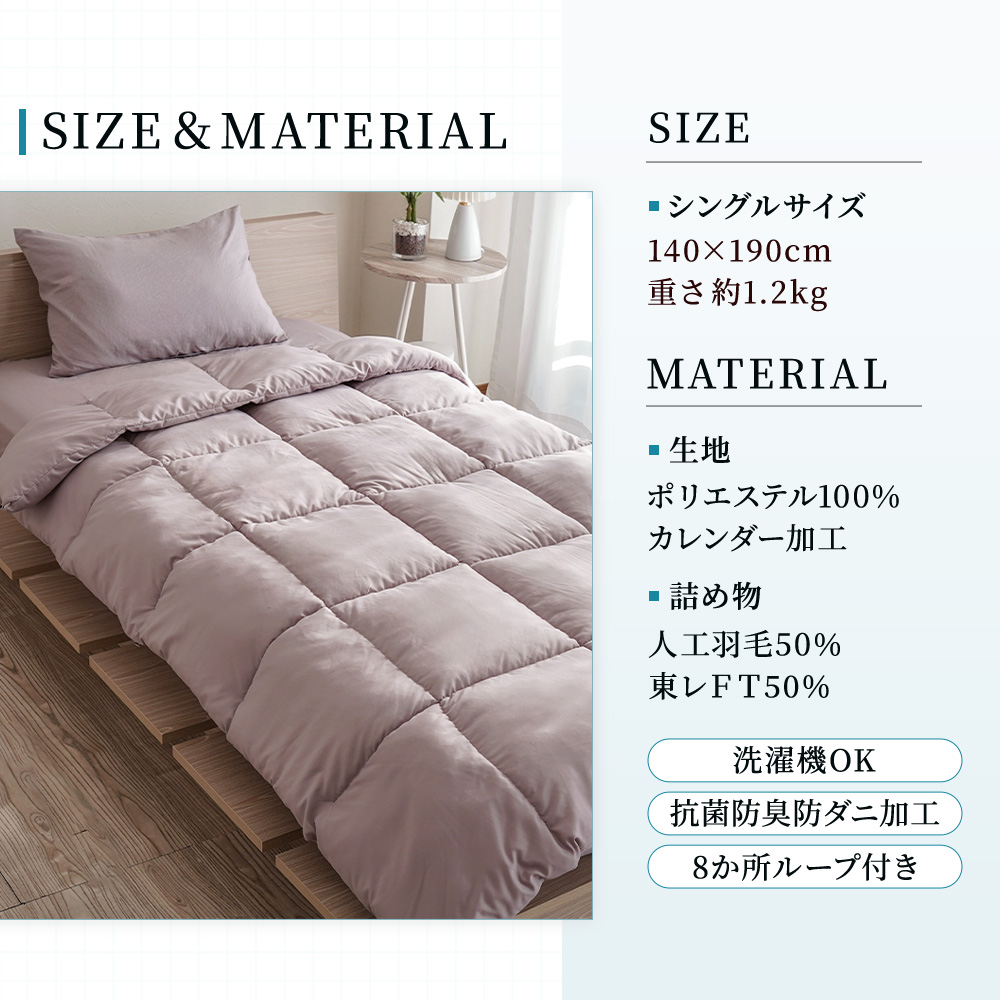 肌掛け布団 シングル 軽量 軽い アレルギー対策 布団 人工ダウン 人工羽毛 夏 抗菌 防臭 防ダニ 洗える 洗濯機OK ウォッシャブル 冷房対策