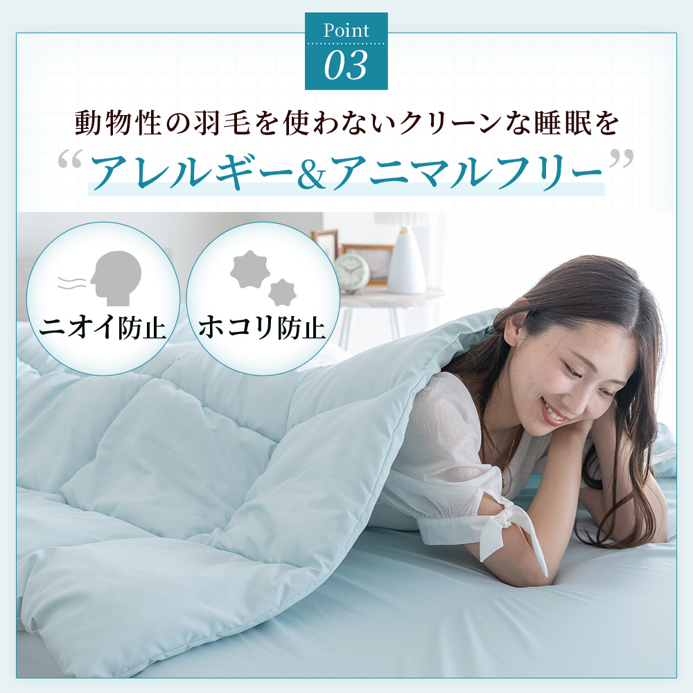 ・羽毛アレルギーの方も安心して使える、アレルギーフリーの肌掛け布団。