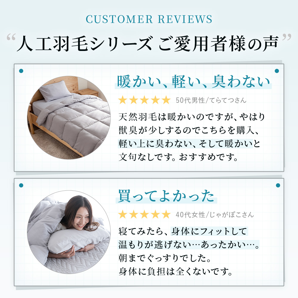 詰め物:ポリエステル100% 【配合率】人工羽毛(シルフィードダウン)50%、東レftわた50%