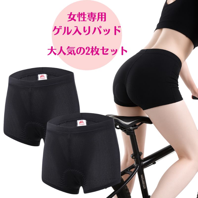 サイクルパンツ 2枚組 レディース インナーパンツ ゲルパッド付 女性専用 サイクルパンツ レーサーパンツ 自転車 サイクリング ロードバイク お尻の痛み軽減