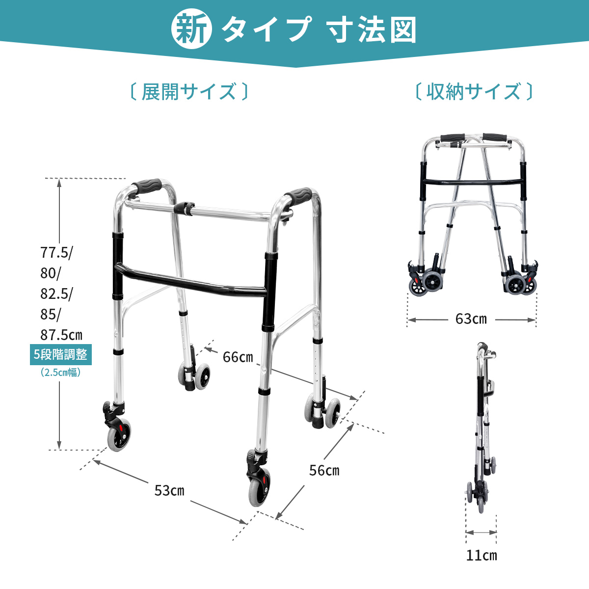 【商品名】固定式 折り畳み式歩行器『前後キャスター付き』