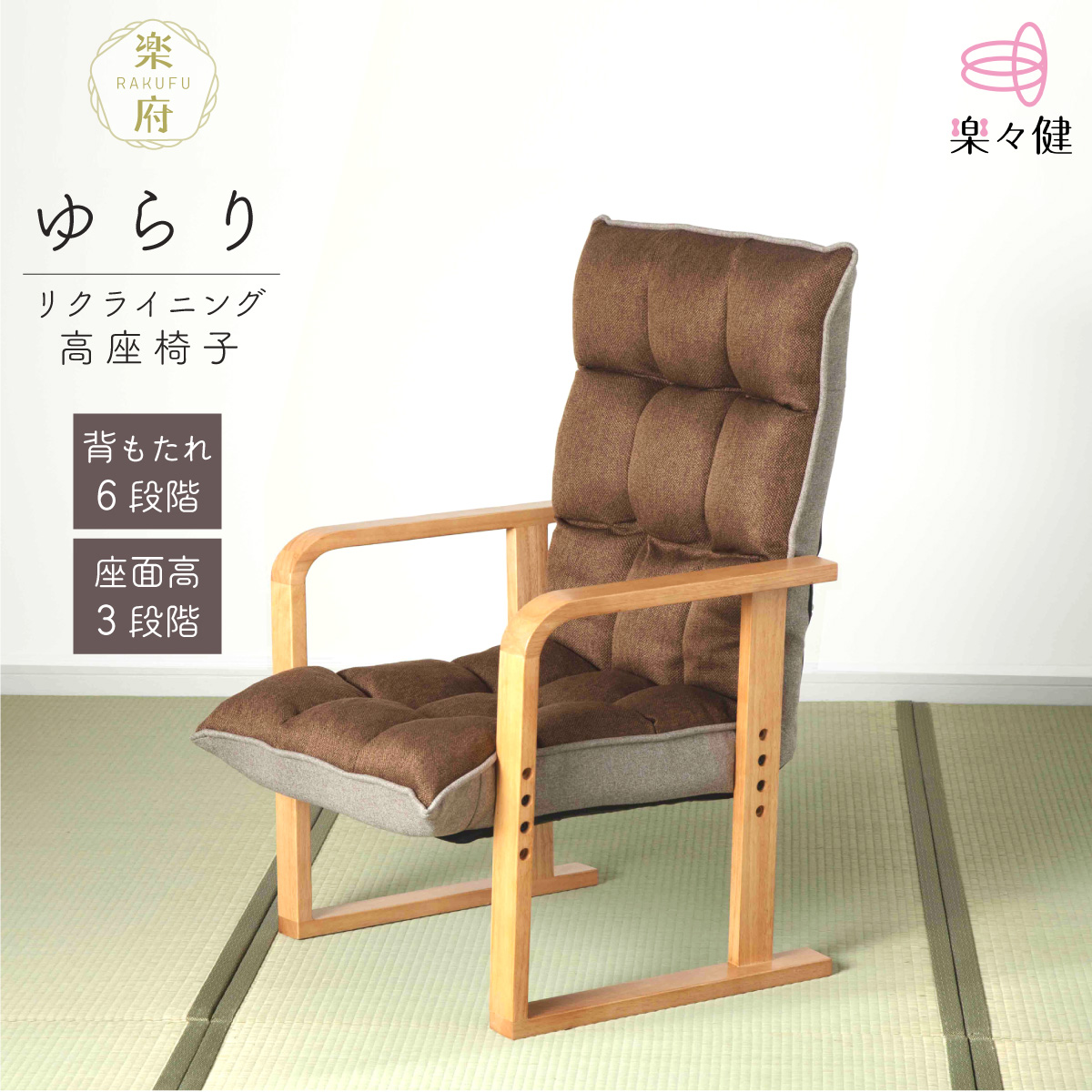 楽々健 リクライニング高座椅子「楽府 ゆらり」(背もたれ6段階調整) ソファ 一人掛け コンパクト 座椅子 腰痛 おしゃれ ハイバック ハイチェア【送料無料】