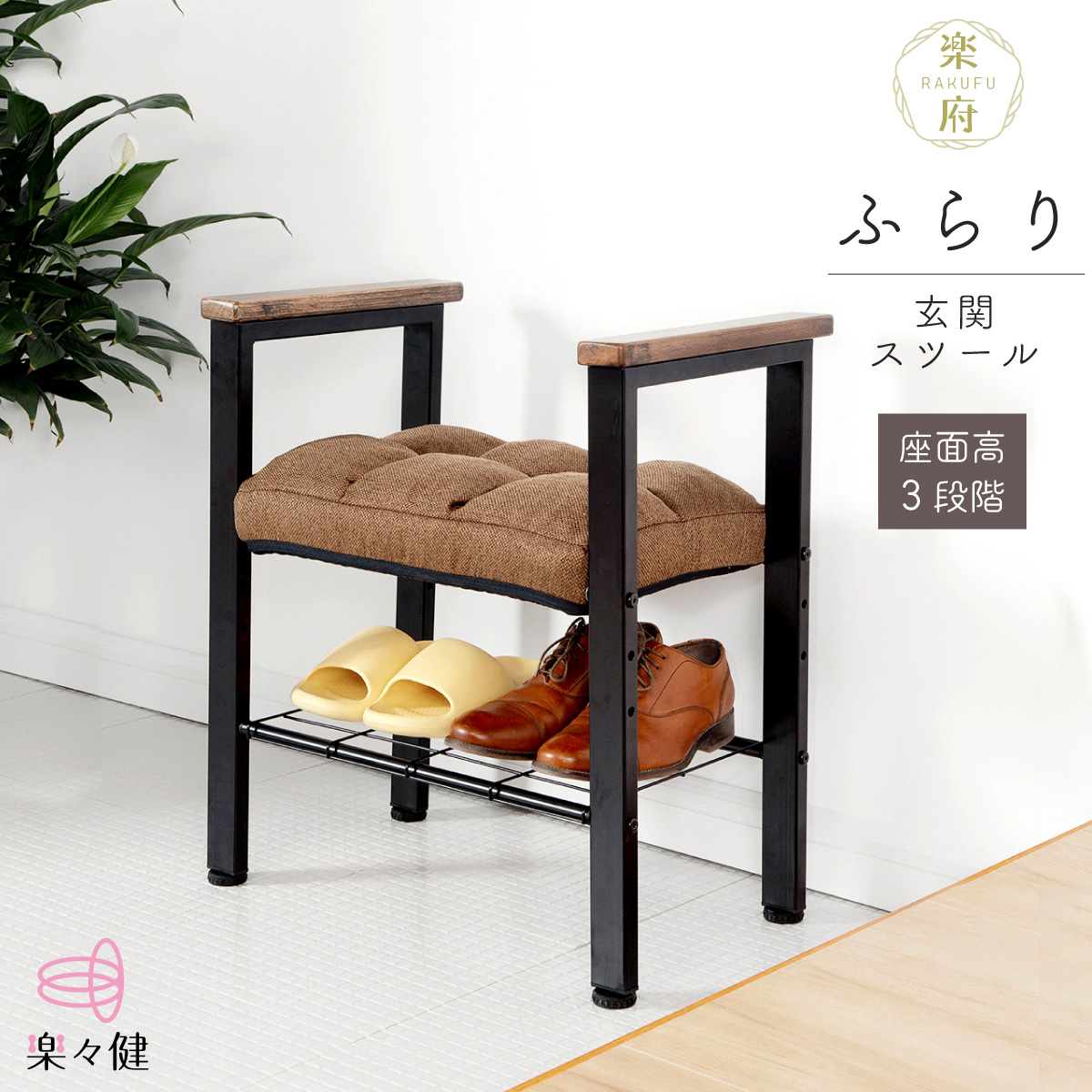 楽々健 玄関スツール「楽府 ふらり」 玄関 椅子 サポート チェア 手すり おしゃれ 椅子 ベンチ いす 腰掛 玄関 和室 スツール ローチェア 靴 収納 【送料無料】