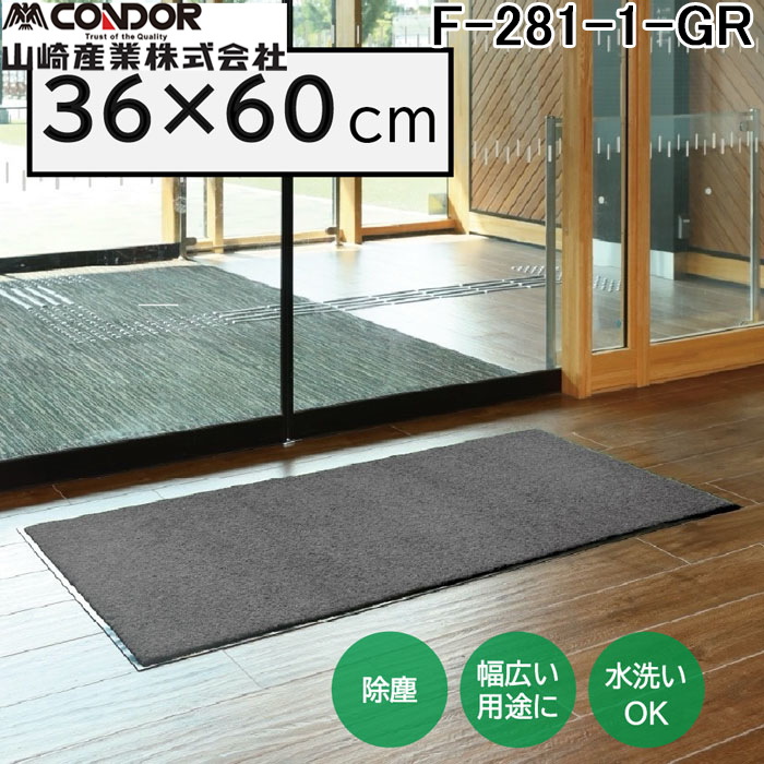 山崎産業 F-281-1-GR ロンステップマットNEO(#1) GR 幅 360 ×奥行 600 グレー 玄関マット かさ高ナイロン糸 エントランス CONDOR (代引不可)