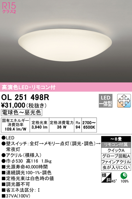 (送料無料) オーデリック OL251498R 和風対応商品 LED一体型 電球色〜昼光色 調光・調色 ODELIC