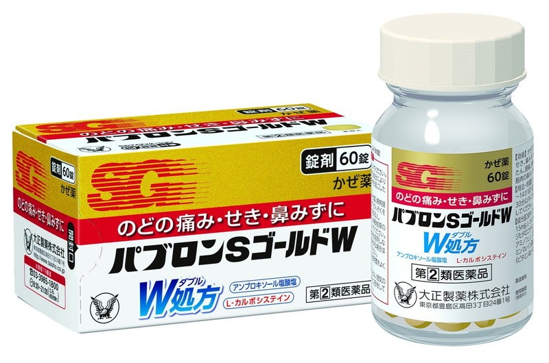 (指定第2類医薬品)大正製薬 パブロンSゴールドW錠 60錠 風邪 かぜ のど 鼻 みず 鼻づまり かぜ薬 のどの痛み 喉の痛み 発熱 症状
