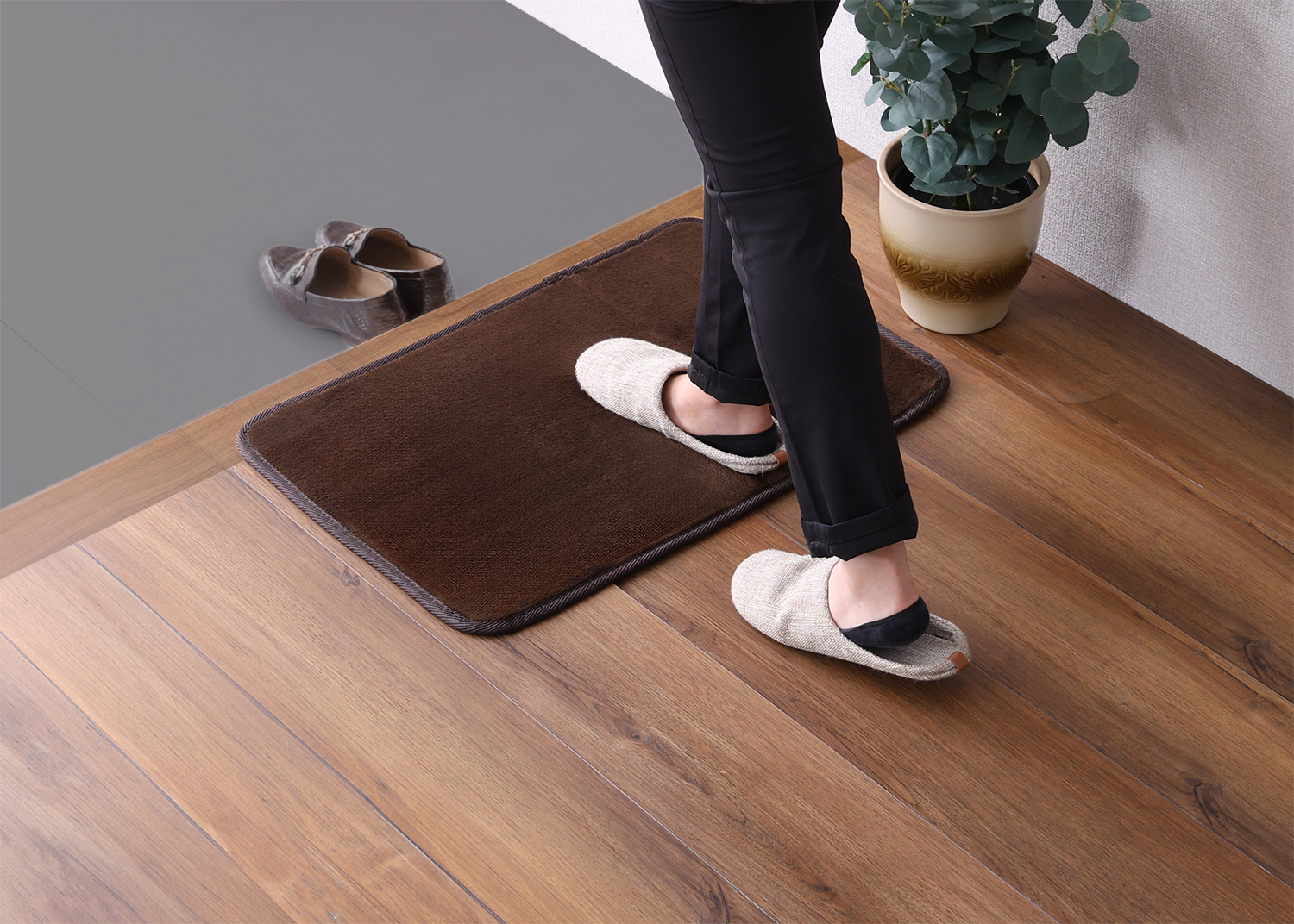 裏面加工付きでマットの上を歩いてもズレにくい。