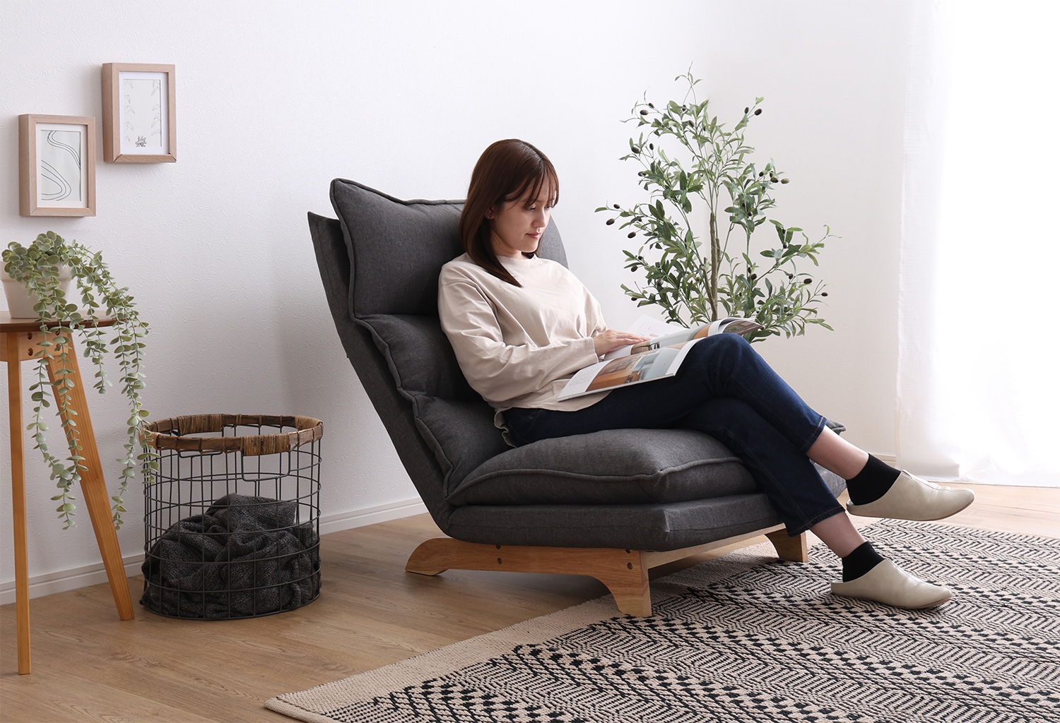 脚付きリクライニングローソファ 1人掛け